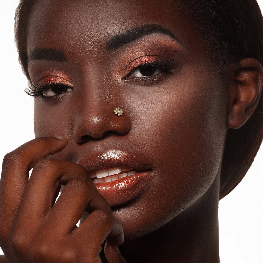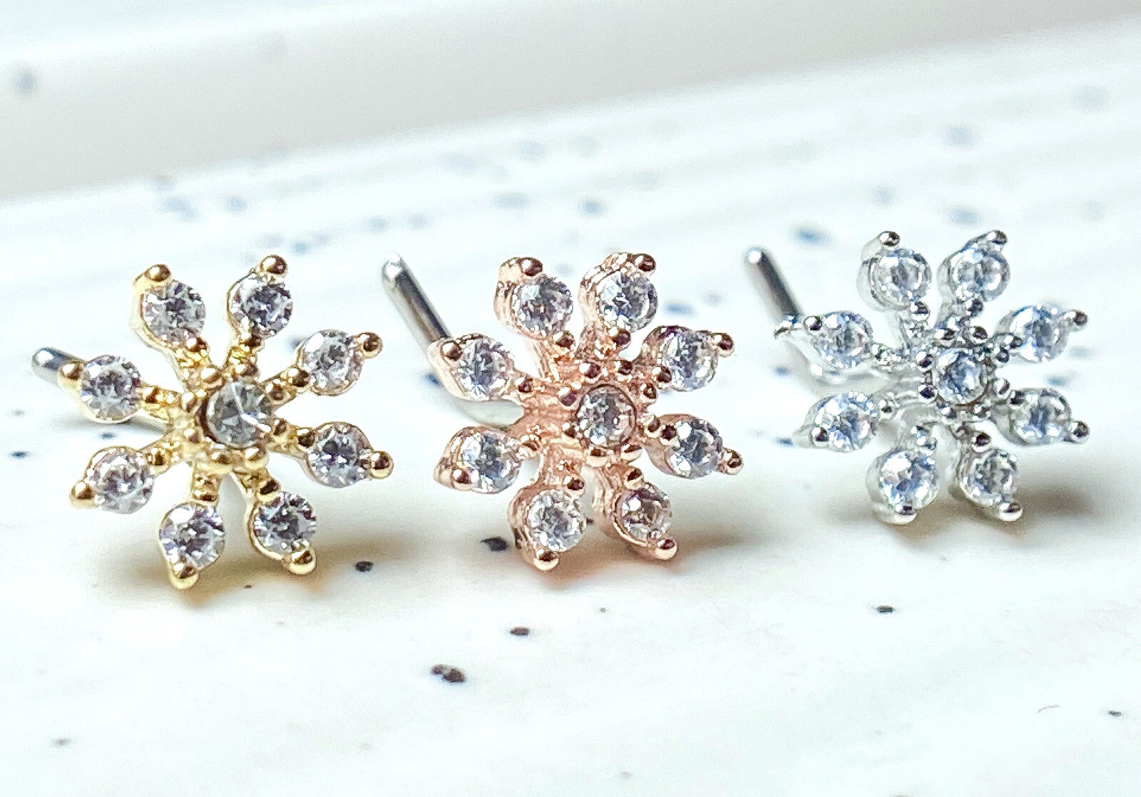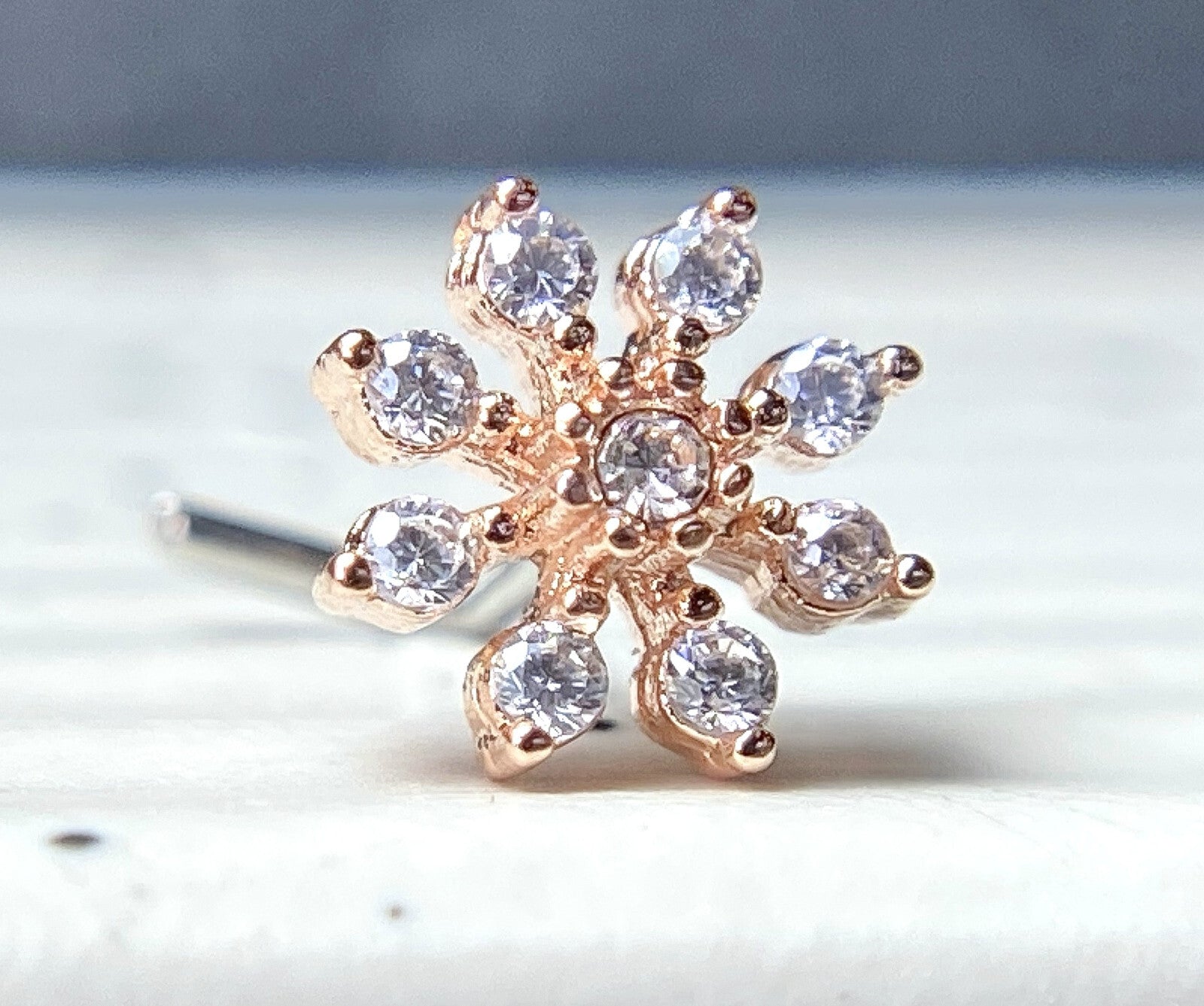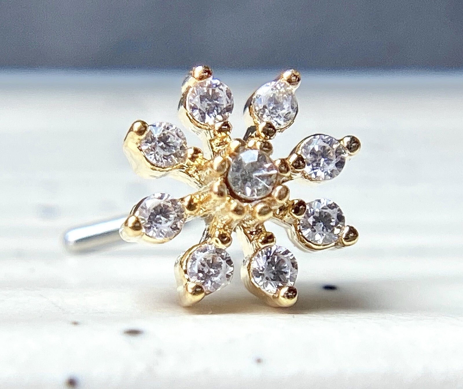 1pc CZ Gem Flower Starburst L-Bend Nose Ring Stud Screw 316L Surgical Steel