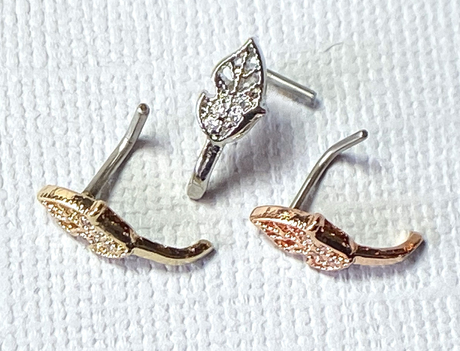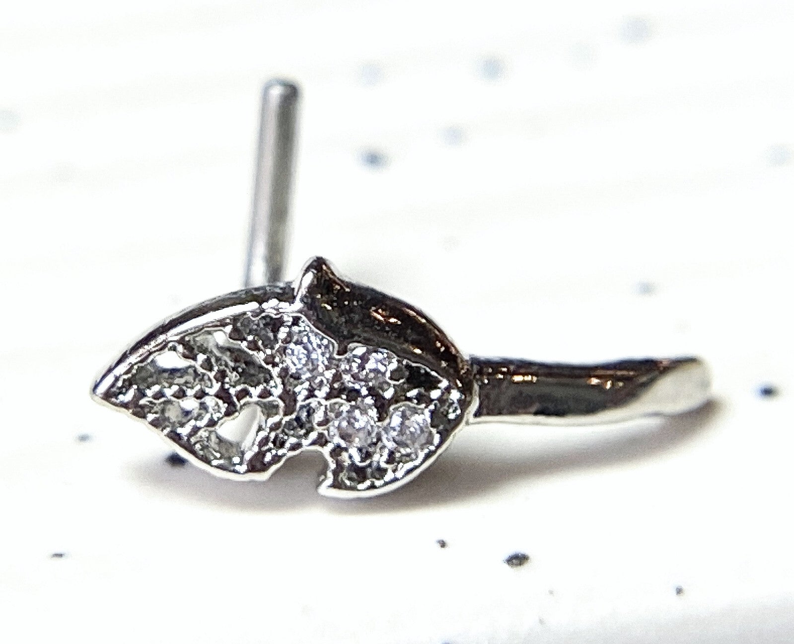 1pc CZ Gem Set Leaf Nose Crawler L-Bend 20g or 18g Nose Ring Stud Screw