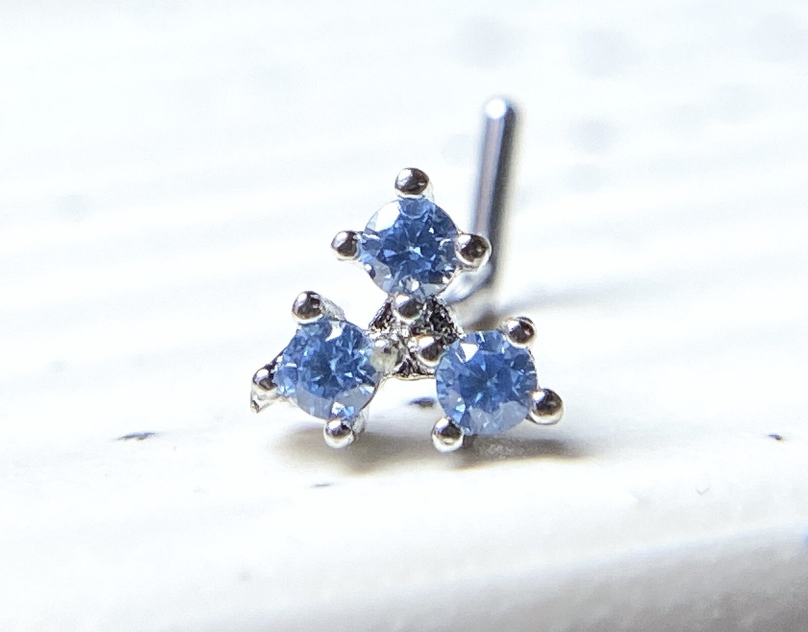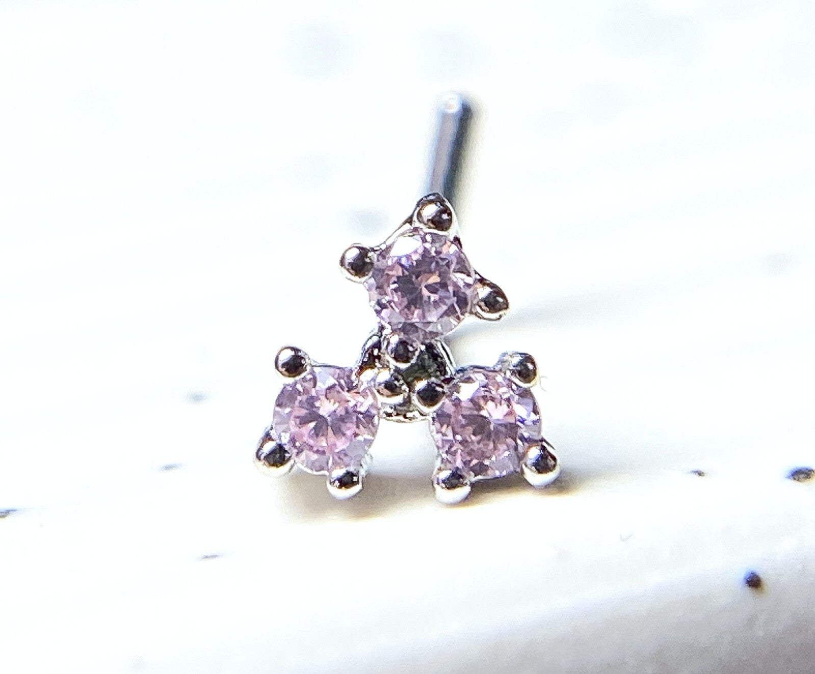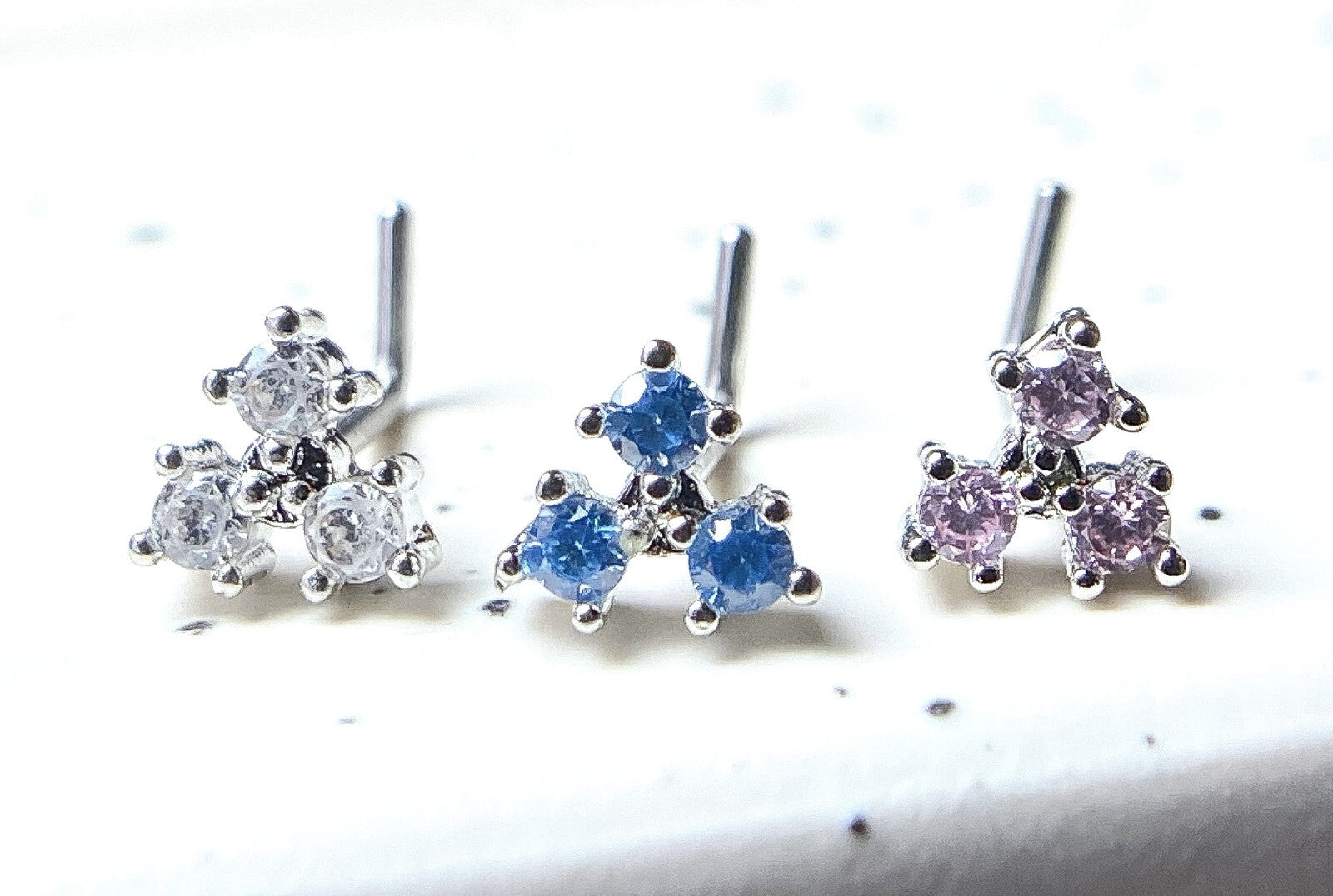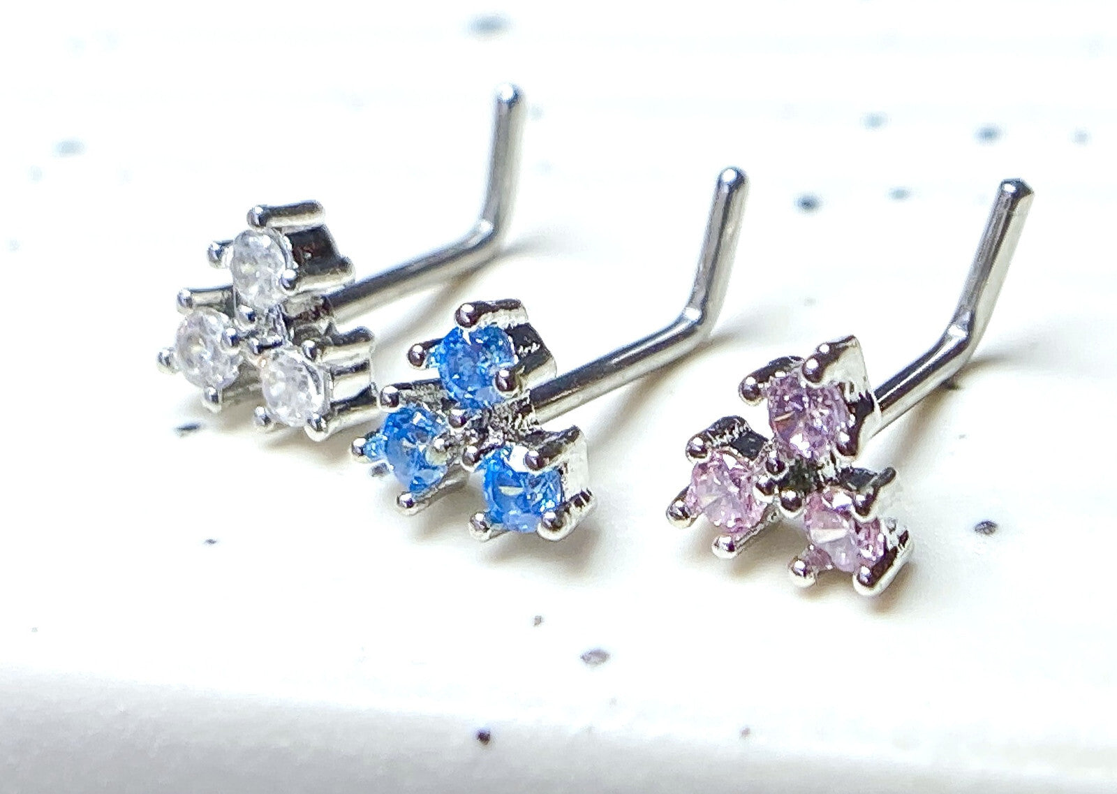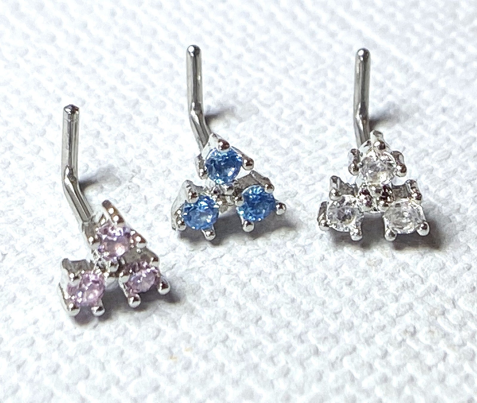 1pc CZ Gem Triangle L-Bend 20g Nose Ring Stud Screw 316L Surgical Steel