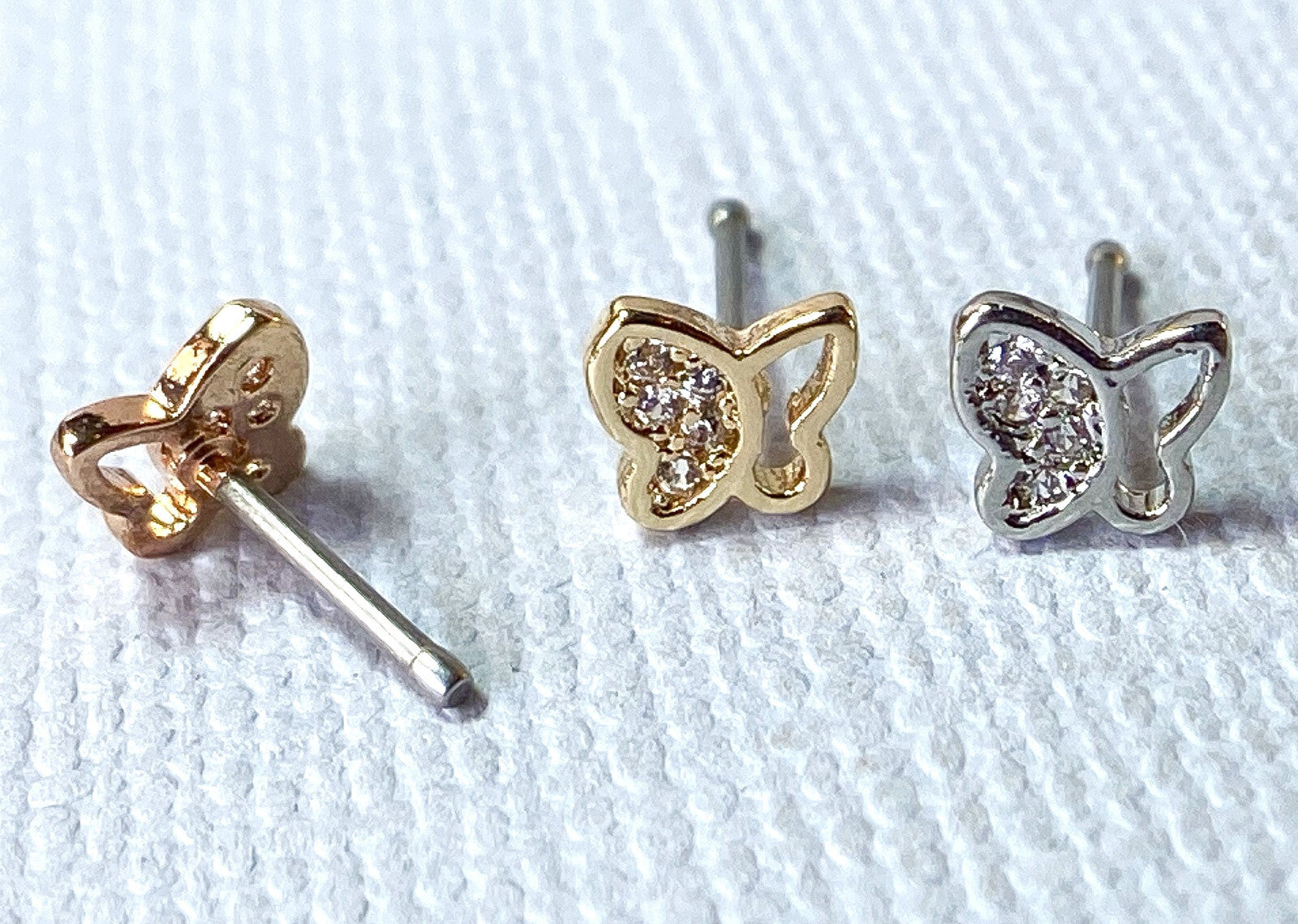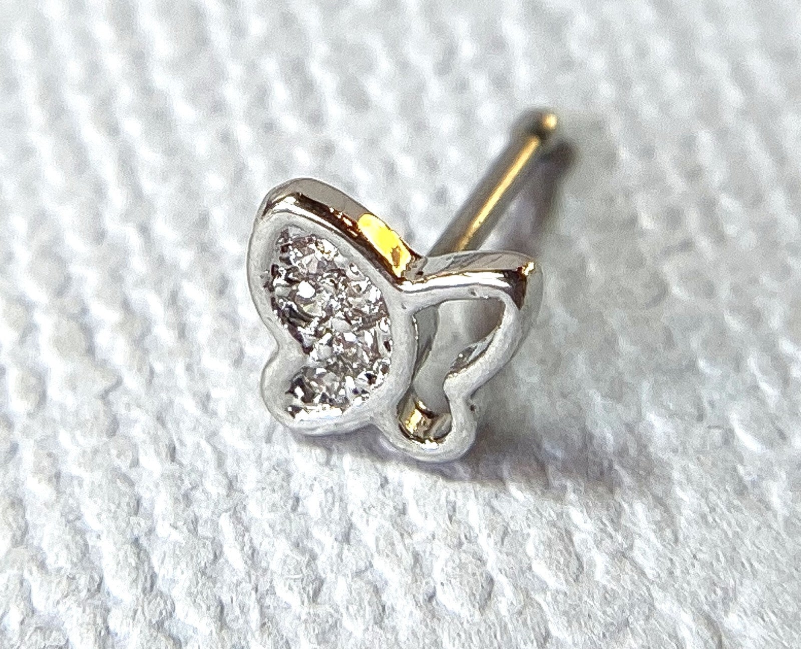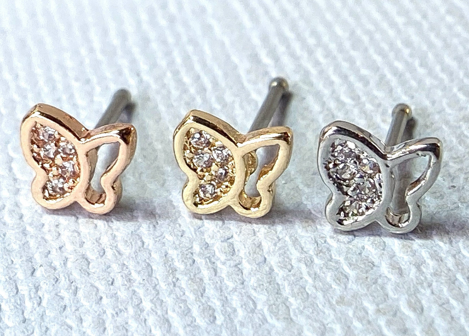 1pc CZ Paved Butterfly 20g Nose Ring Stud Bone 316L Surgical Steel