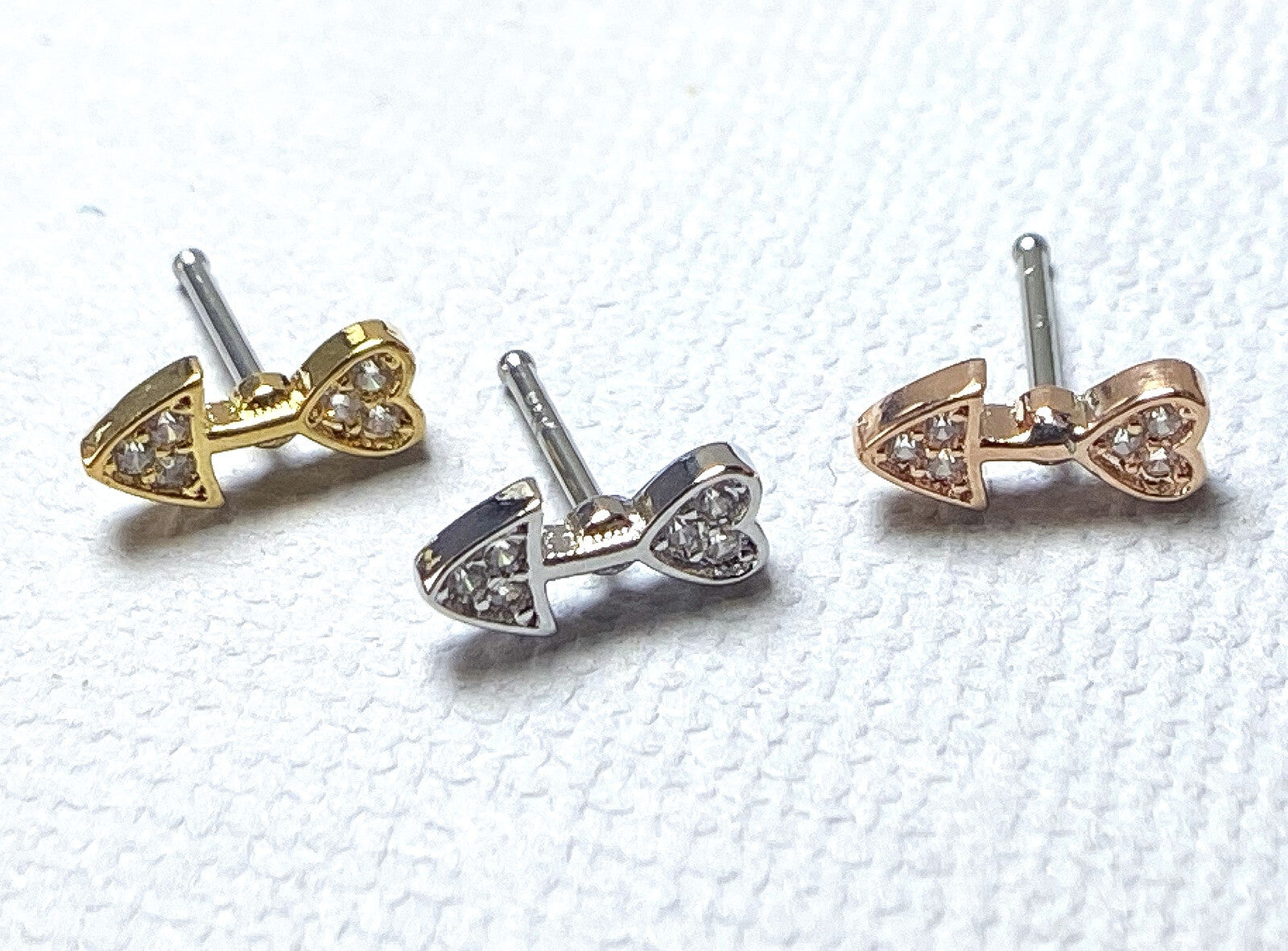 1pc CZ Paved Heart Arrow 20g Nose Ring Stud 316L Surgical Steel