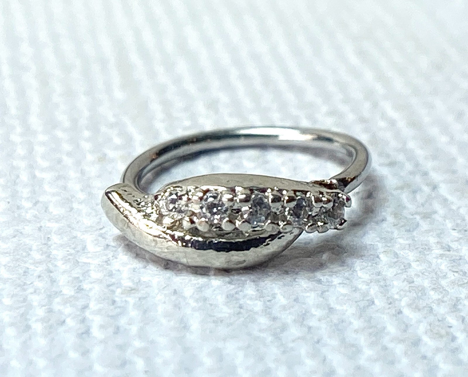 Materials: 316L surgical steel ring, rhodium/ion plated brass design portion, CZ gems