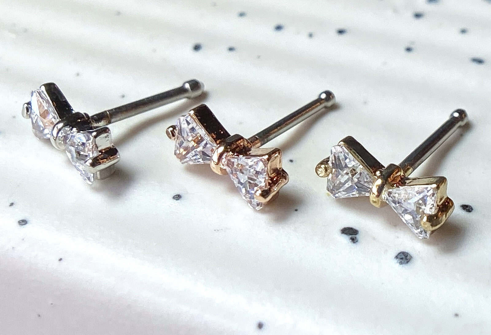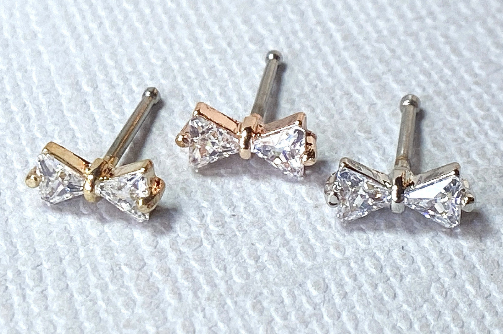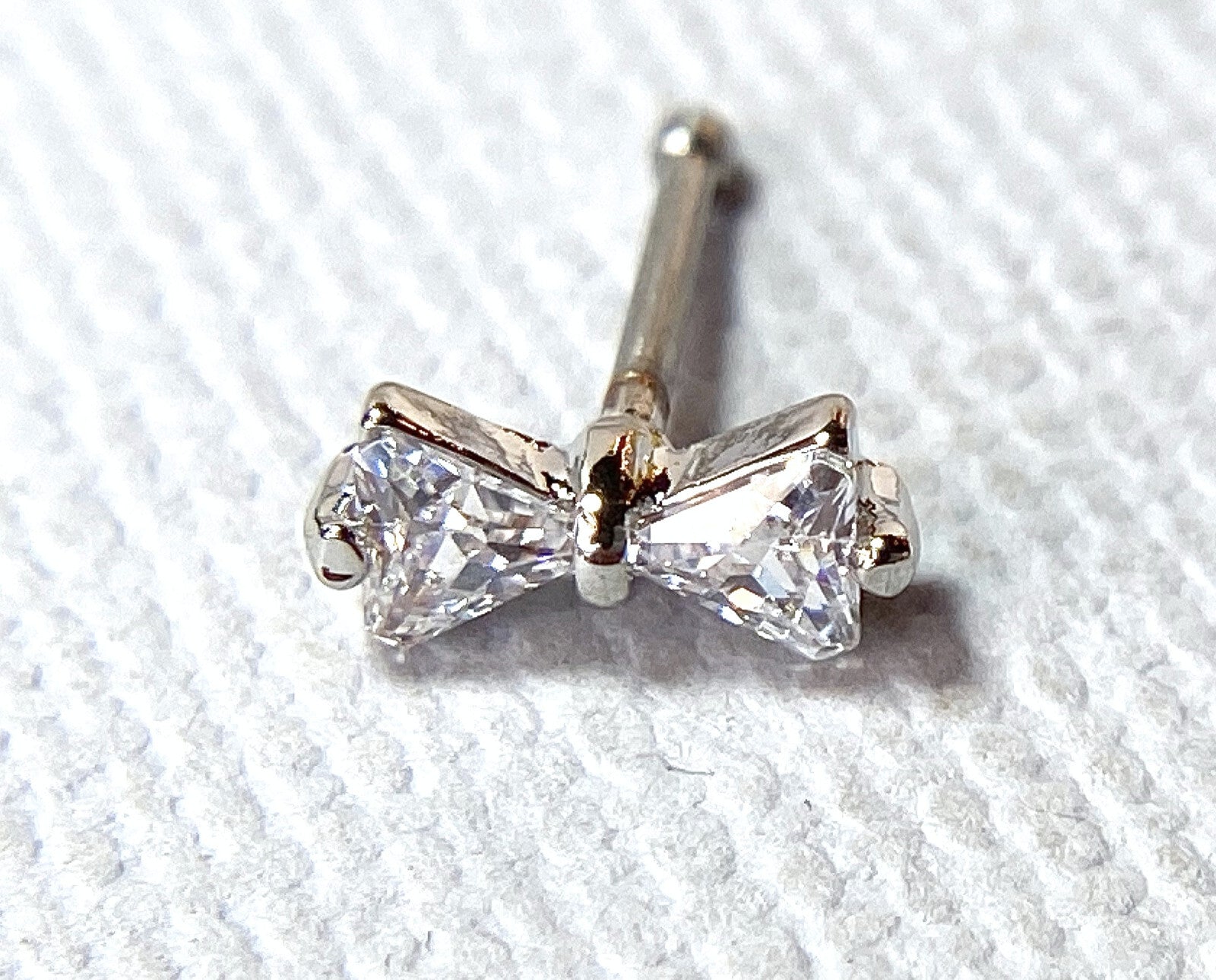 1pc CZ Ribbon 20g Nose Ring Stud Bone 316L Surgical Steel