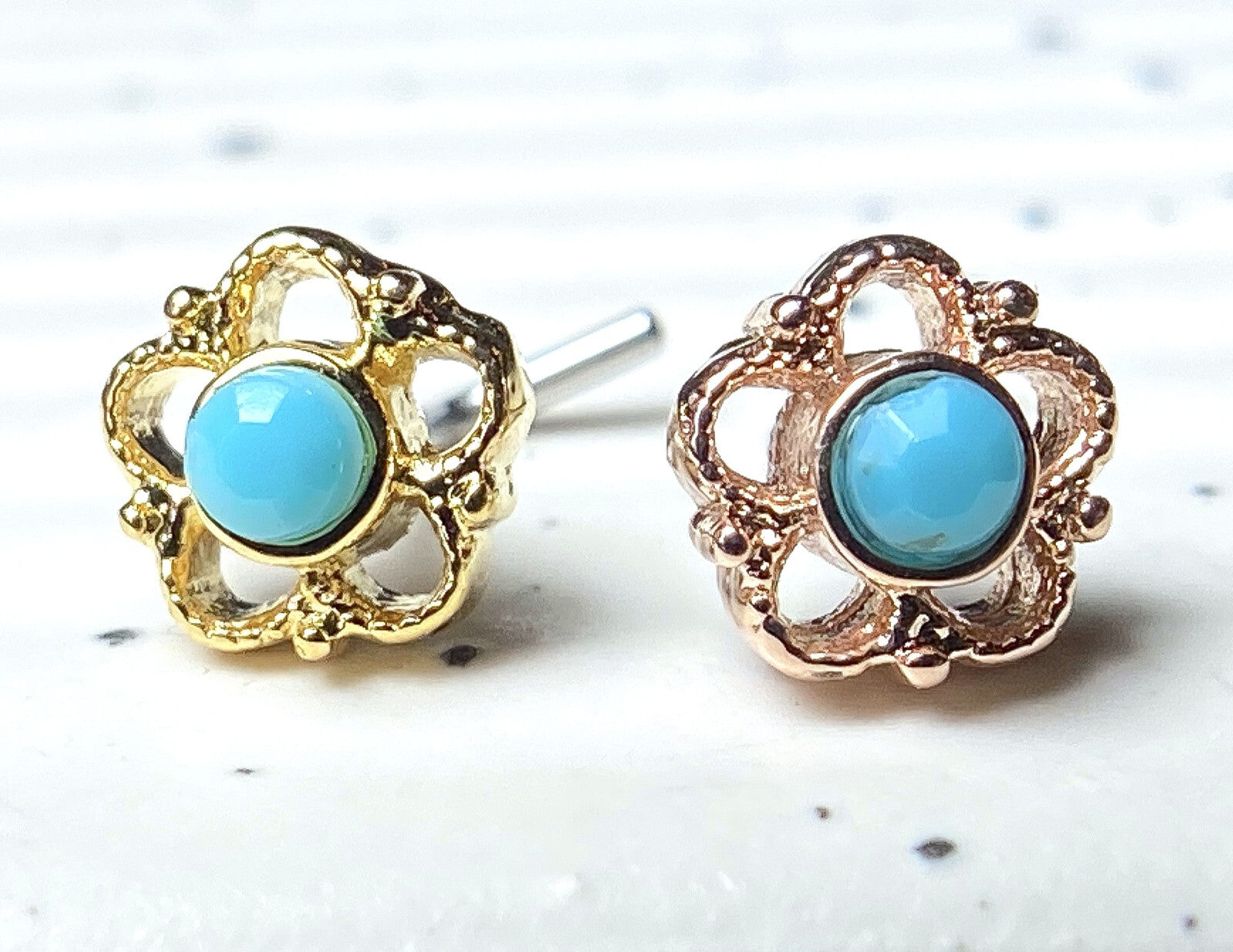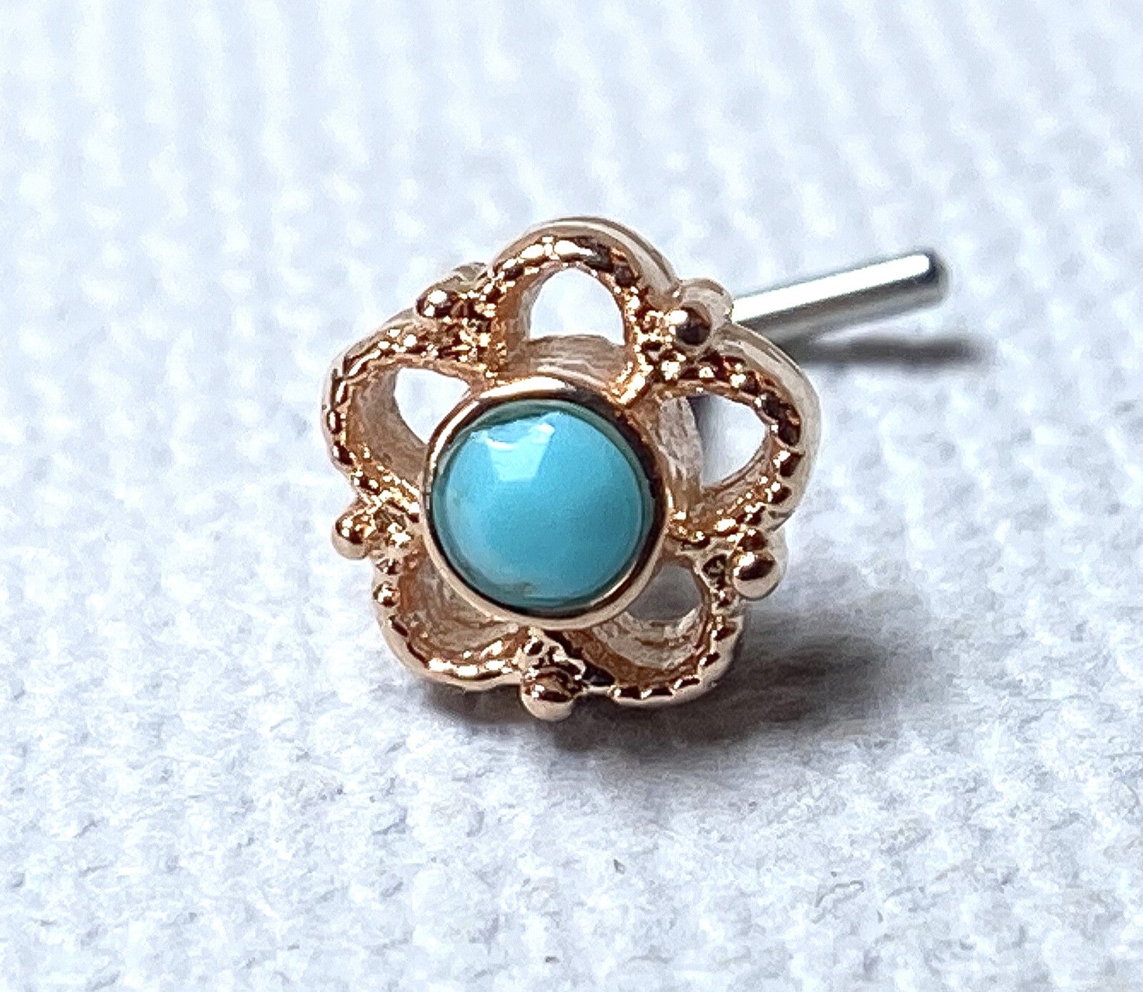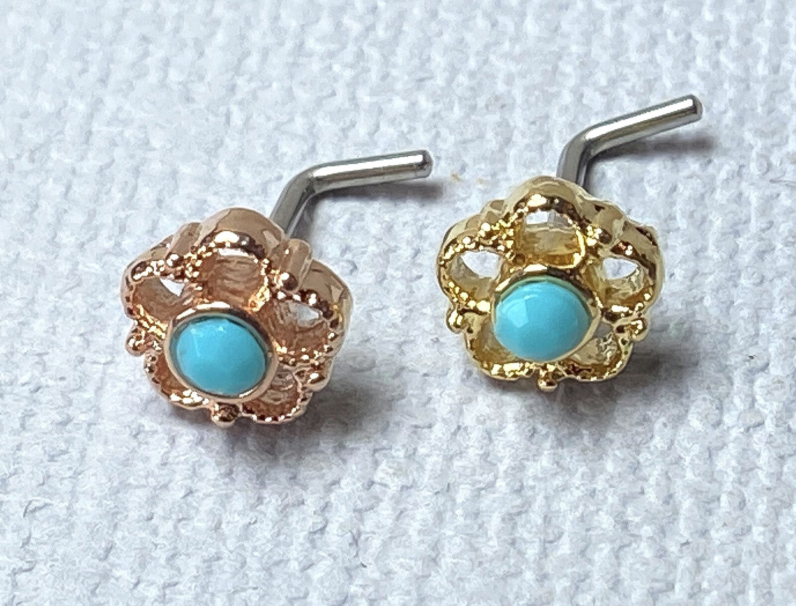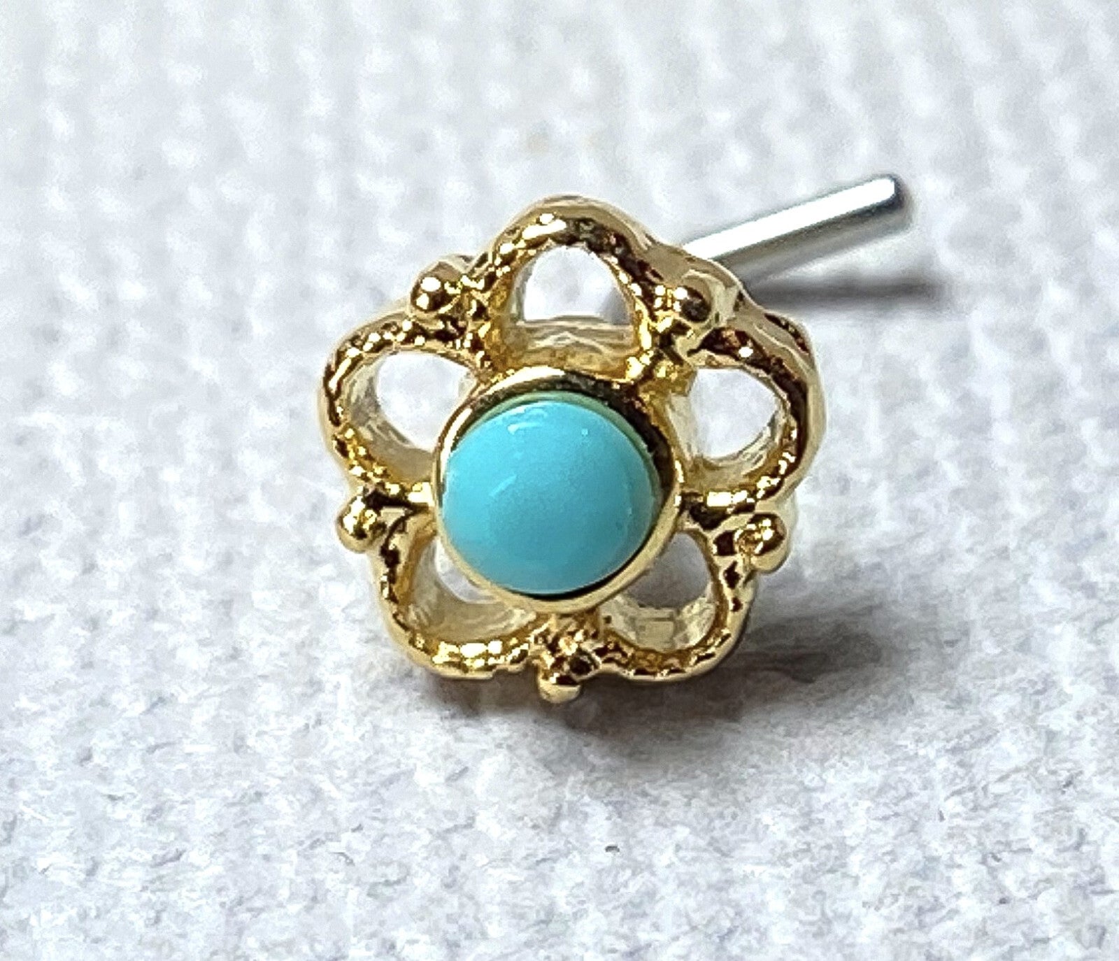 1pc Filigree Flower w/Turquoise Stone Center 20g L-Bend Nose Ring Stud Screw