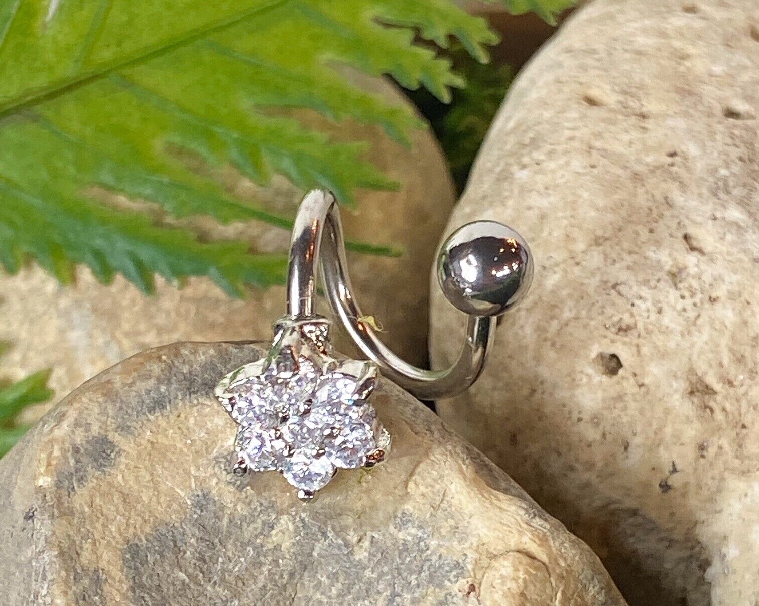1pc Flower Twist CZ Gem Belly Ring Navel Piercing Pierced Naval Body Jewelry