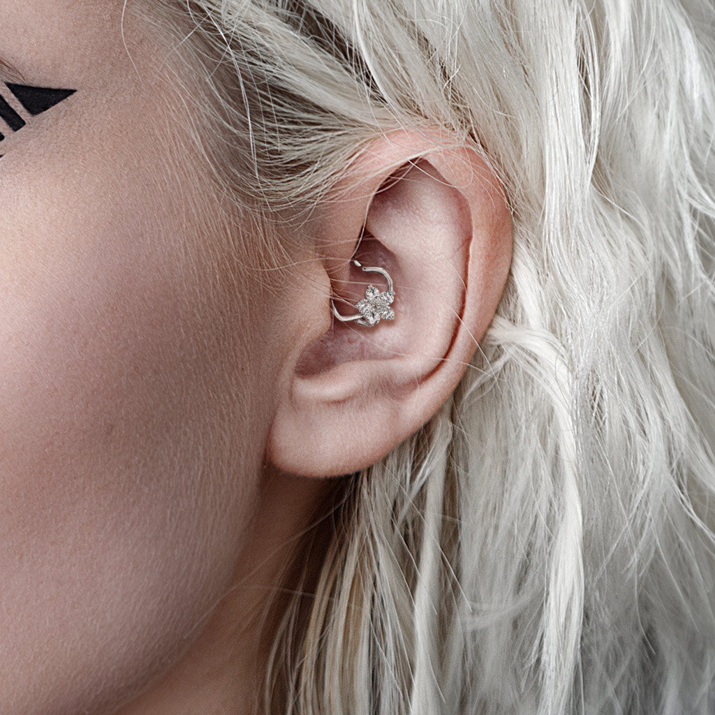 Please note that "ear side" is opposite from the side of the ring that the gem design is on (the gem design is on the right side of the ring to be worn in the left ear, and vice versa)