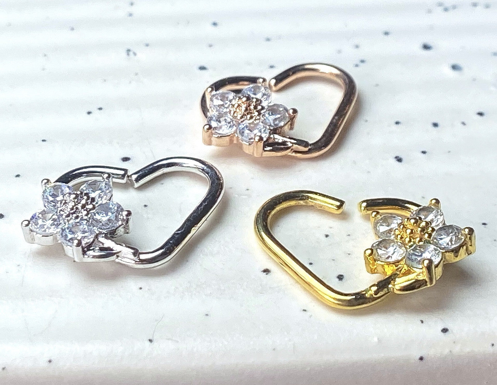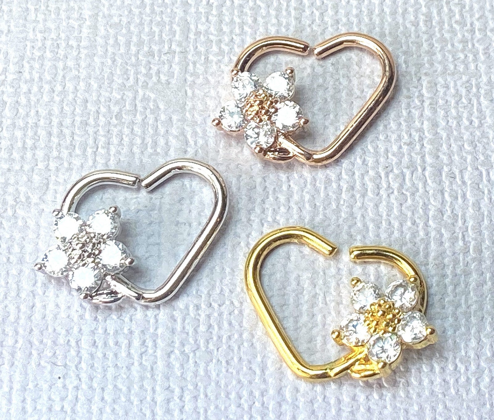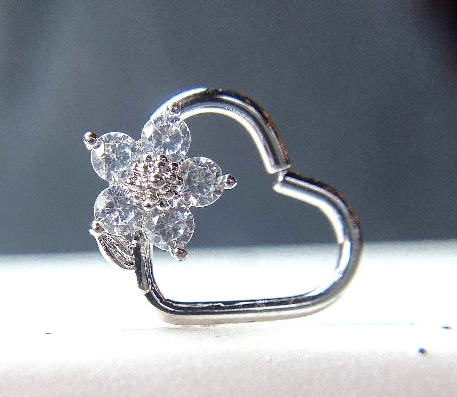 1pc Heart Bendable Ear Cartilage Daith Hoop Ring w/ Prong Set CZ Gem Flower