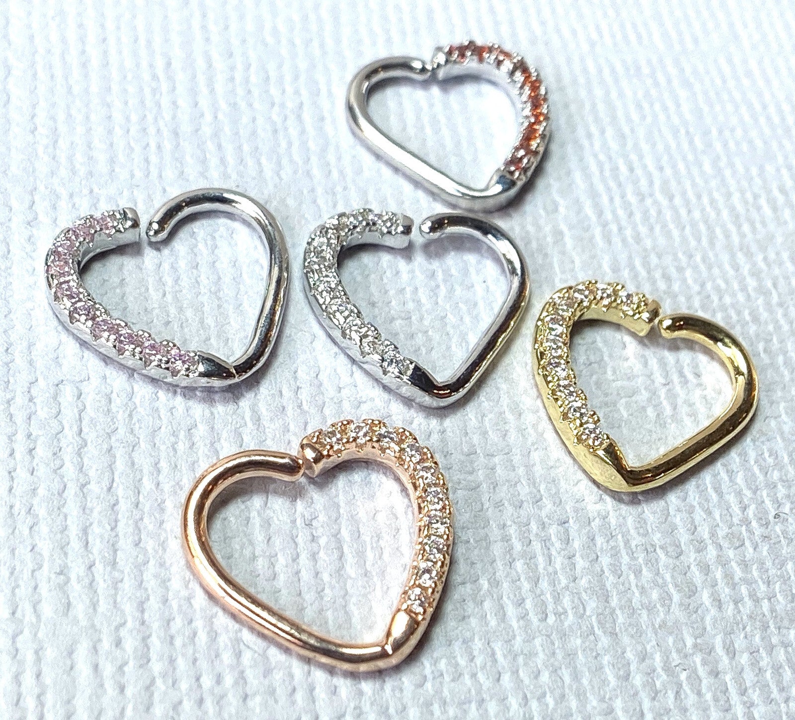 1pc Heart Bendable Ear Hoop Ring Lined CZ Gems Cartilage Daith Helix Snug