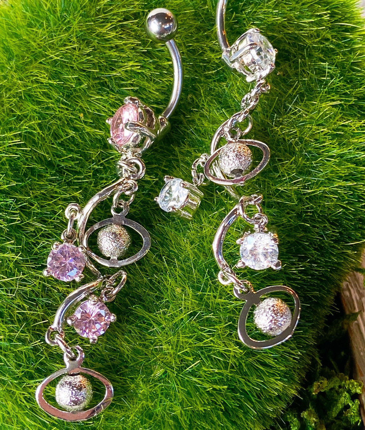 Jingle Bells CZ Gem Vine Chandelier Belly Ring - Select color from drop down menu above