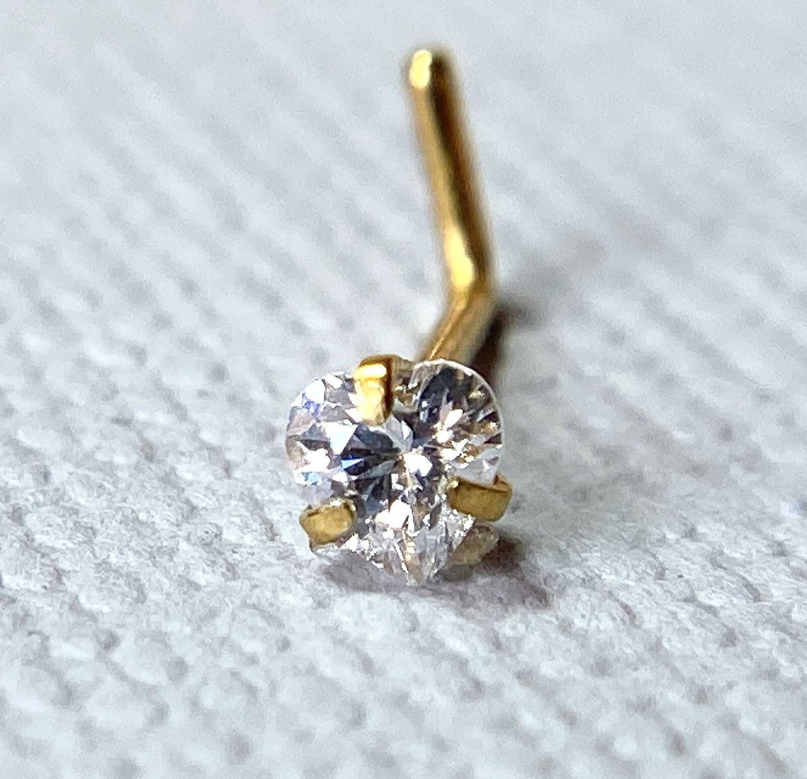 1pc L-Bend Nose Ring Prong Set Clear Heart Gem Ion Plated 316L Surgical Steel
