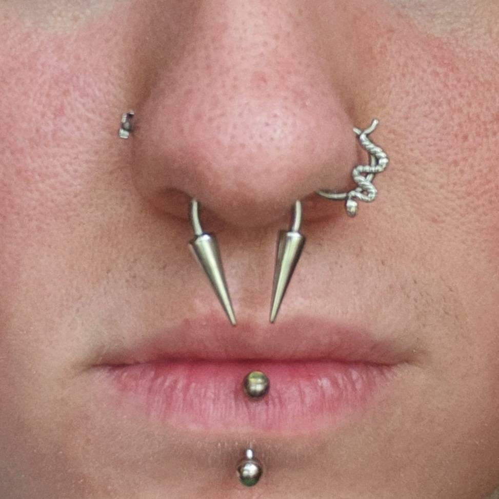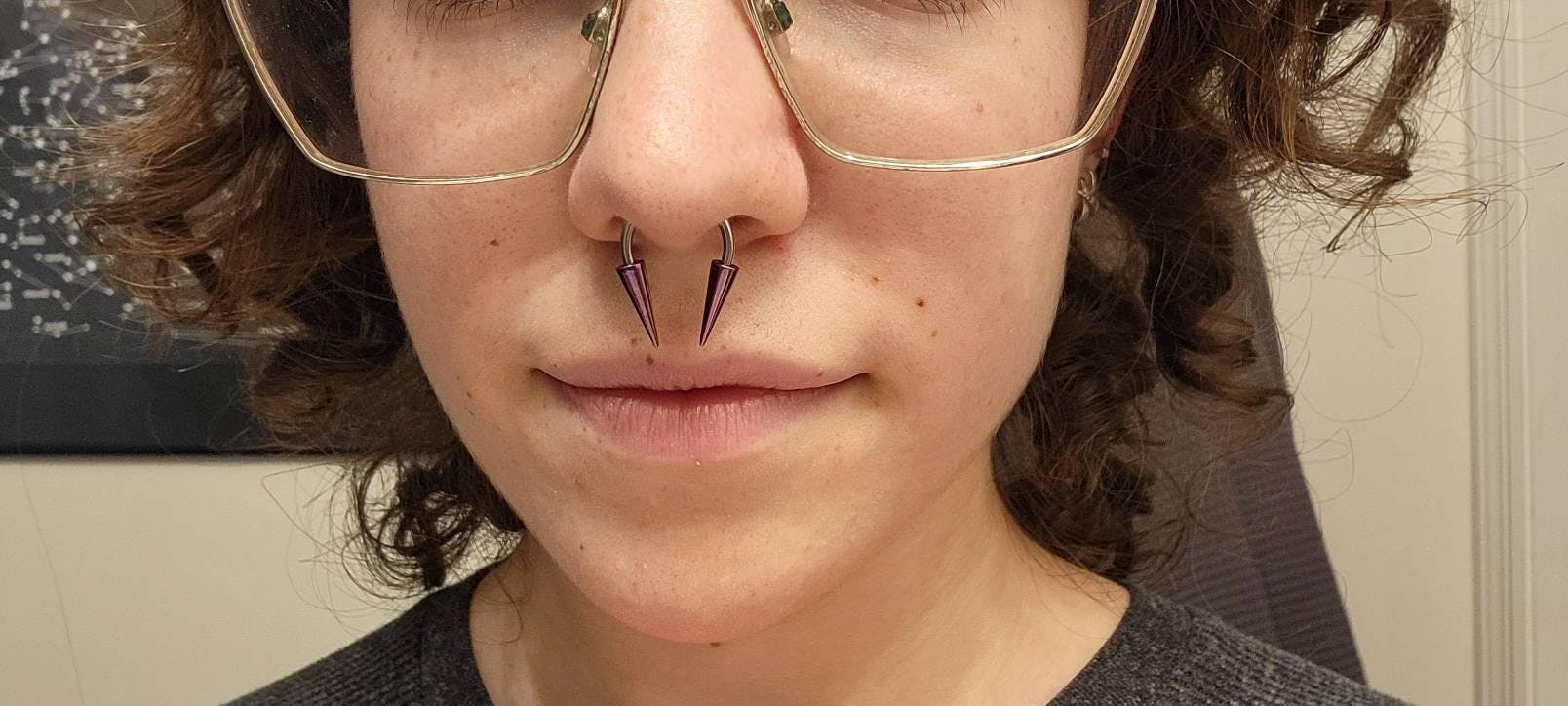 Septum is definitely gonna look very different depending on how much space you have between your upper lip and where your septum is pierced. Mine is a tiny bit more dramatic than I was hoping for, but I wanted big and got what I wanted LOL.