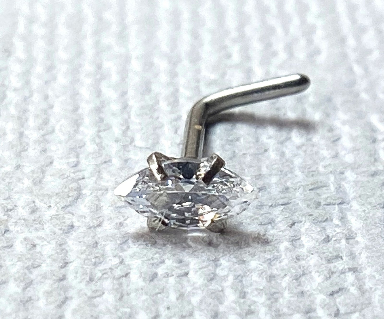 1pc Marquise CZ Gem L-Bend 20g Nose Ring Stud Screw 316L Surgical Steel