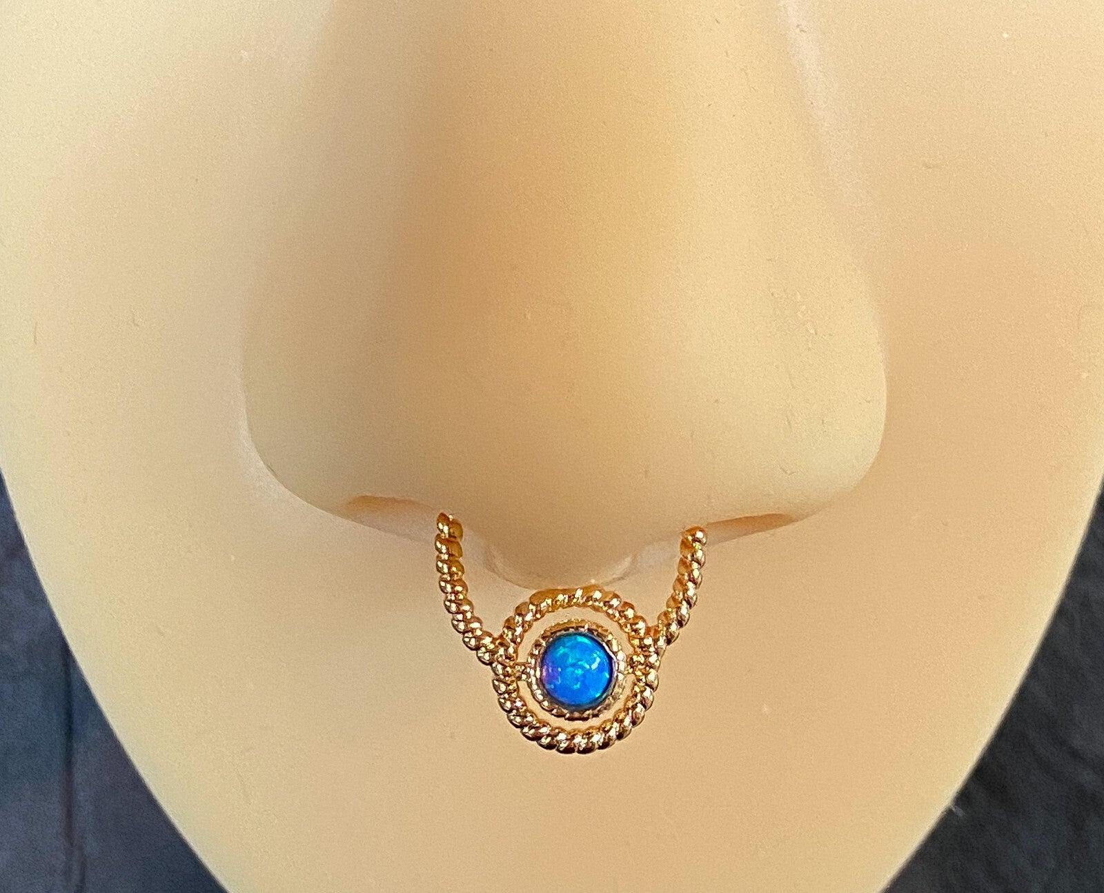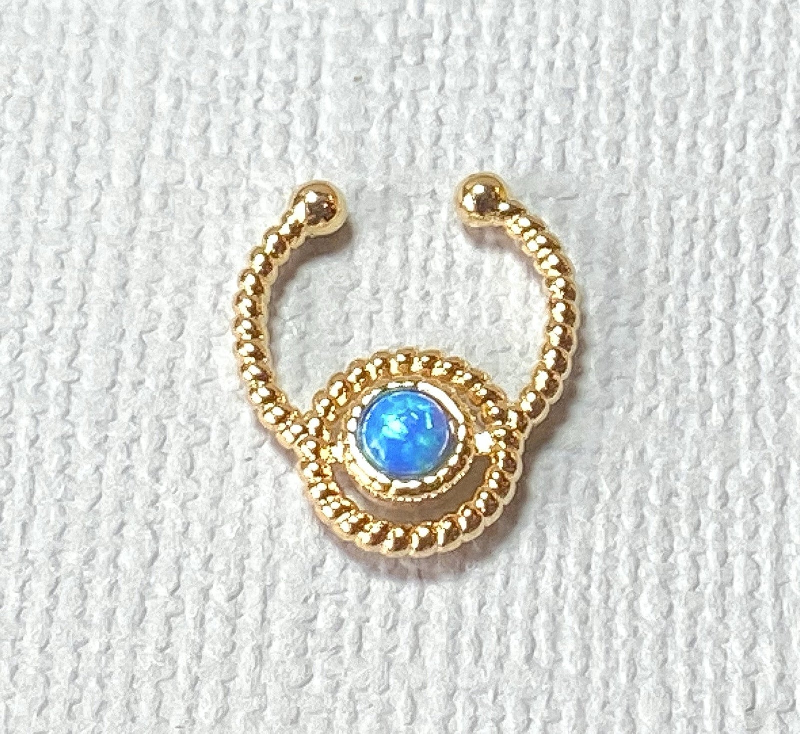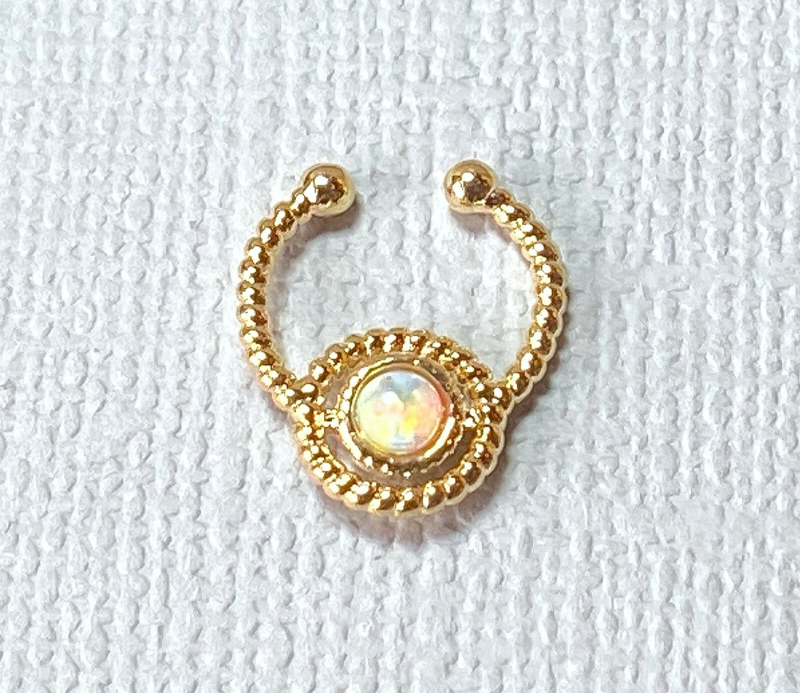1pc NON-Piercing Gold Roped Circle Opal Septum Ring Hanger Faux Fake