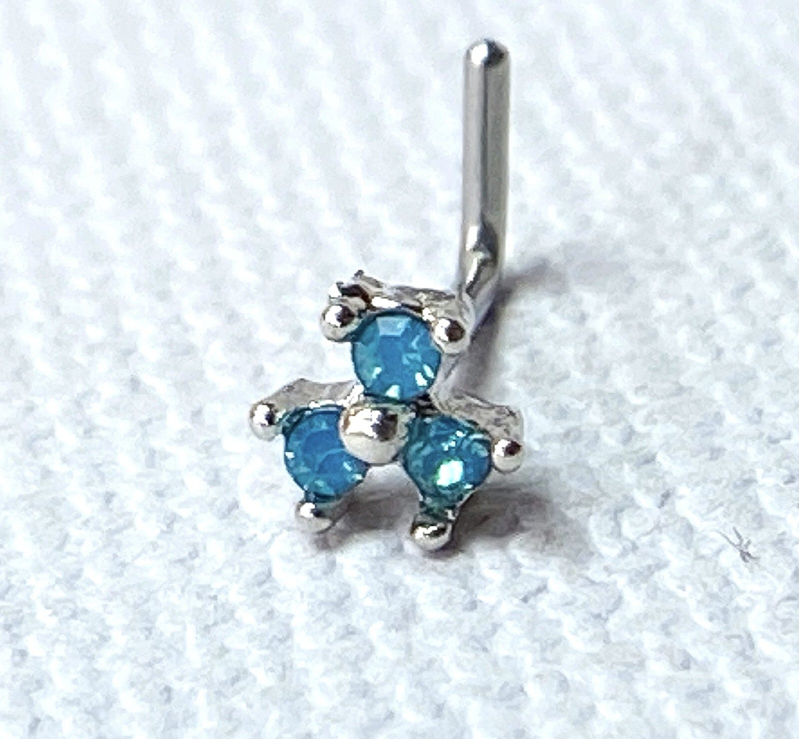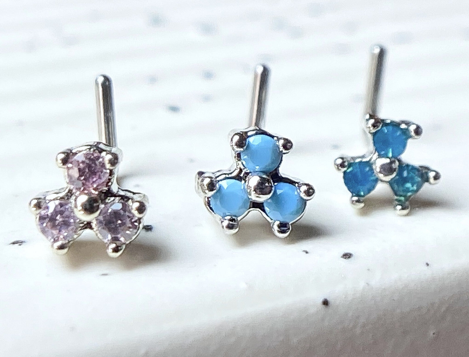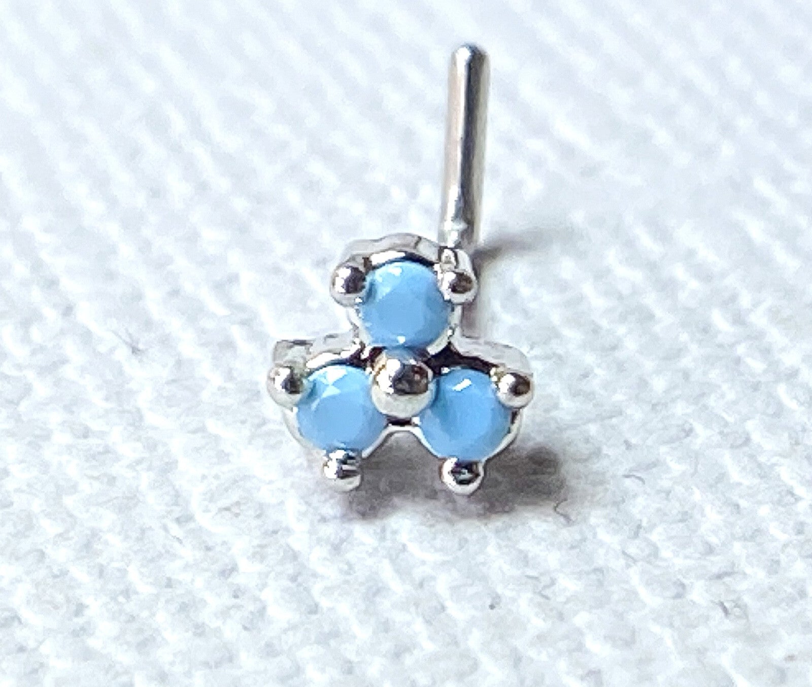 1pc Opalite 3 Stone Triangle L-Bend 20g Nose Ring Stud Screw 316L Surgical Steel