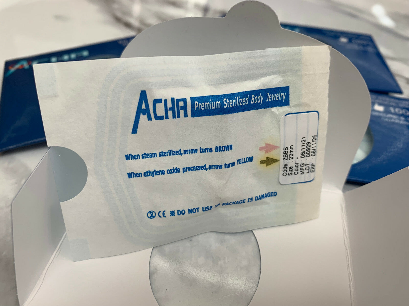 Please Note: All barbells are sterilized through Ethylene Oxide sterilization. However, it is recommended that standard sterilization methods be applied prior to using them in piercing to ensure a clean piercing