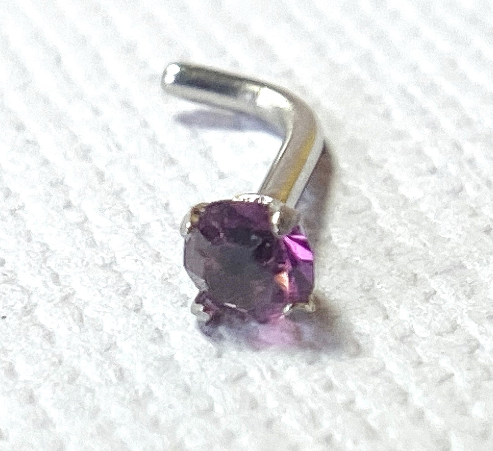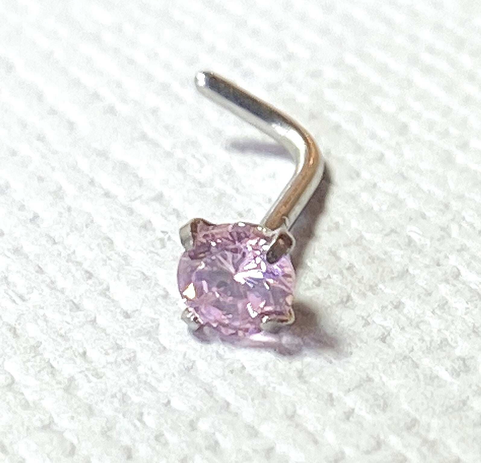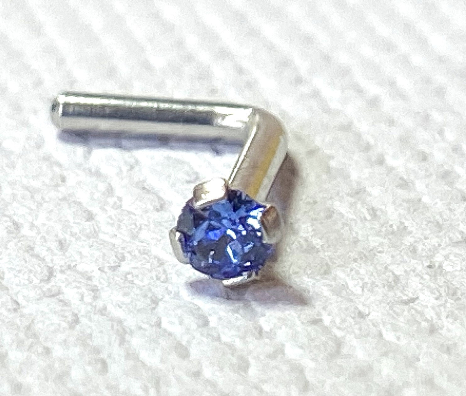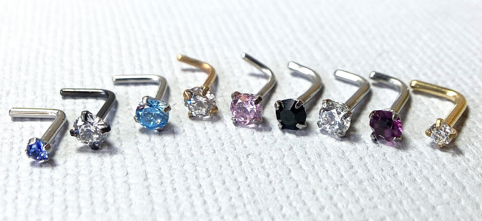 Surgical Steel L-Bend Nose Ring w/Prong Set Gem - select desired gauge and color from the drop down menus