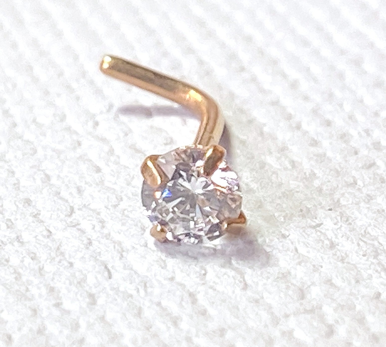1pc Prong Set Clear CZ Gem 316L Surgical Steel L-Bend Nose Ring