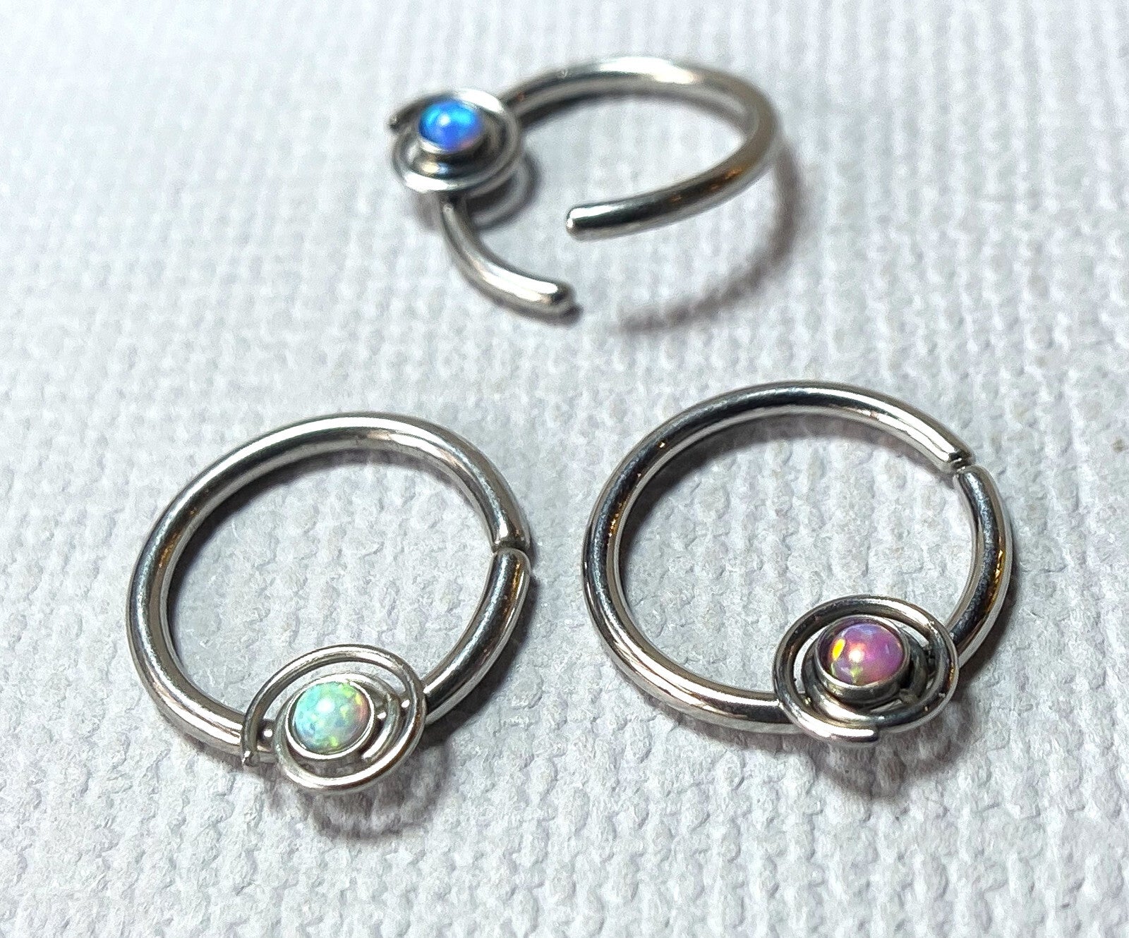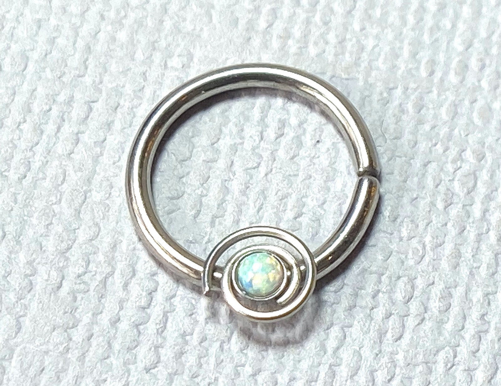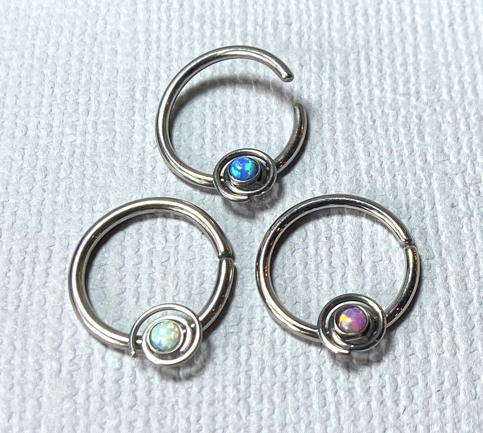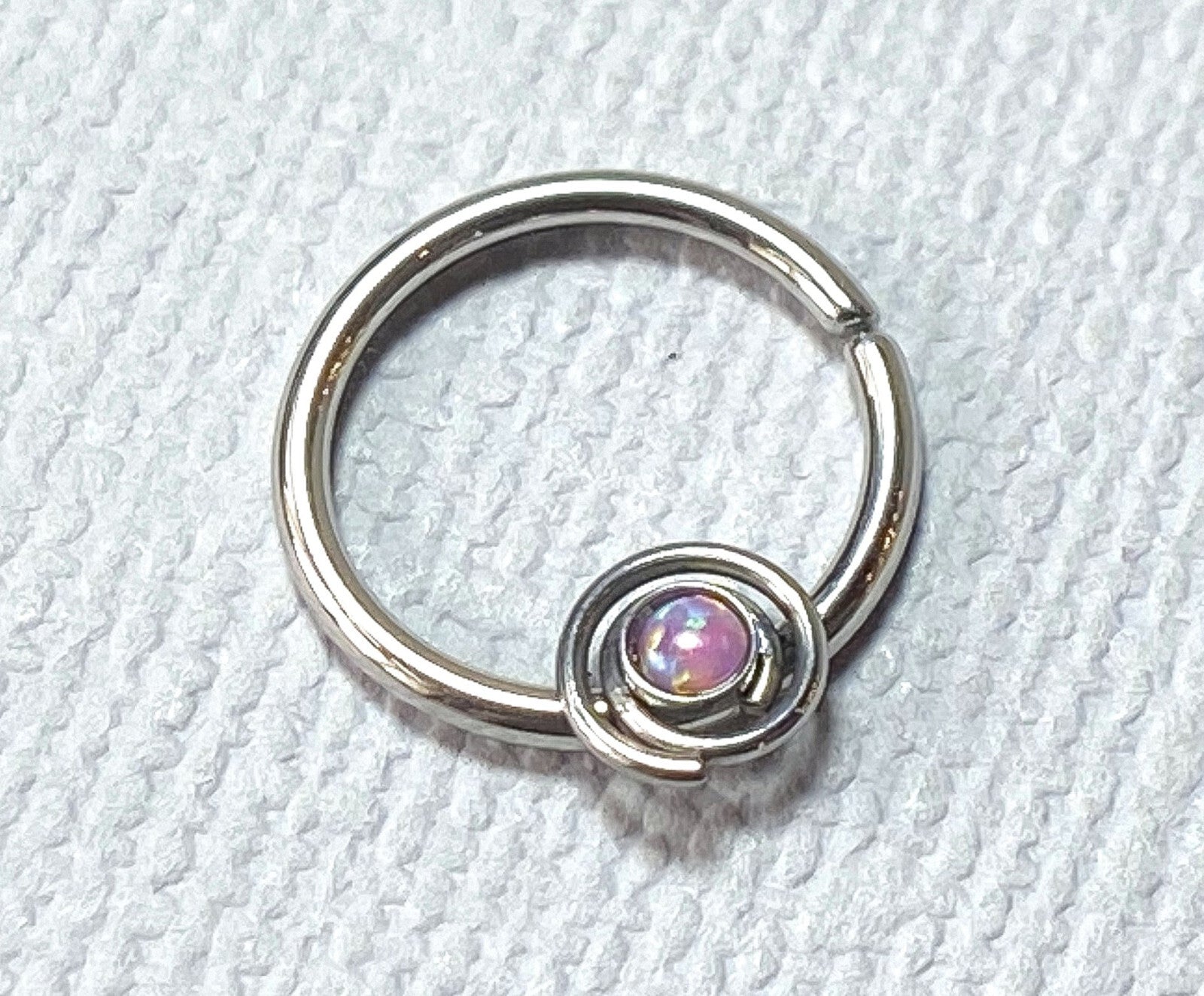 1pc Septum Ring Cartilage Hoop Ring w/ Opal Set Spiral Rook Daith Helix Tragus