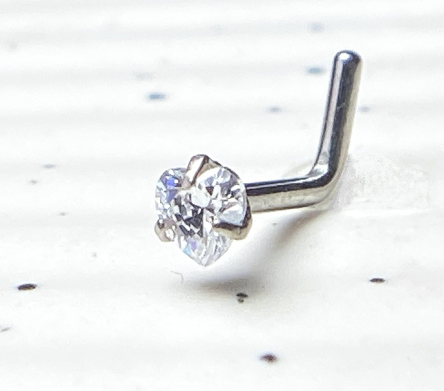 1pc Solid Grade 23 Titanium L-Bend Nose Ring w/ Heart CZ Gem Stud Screw