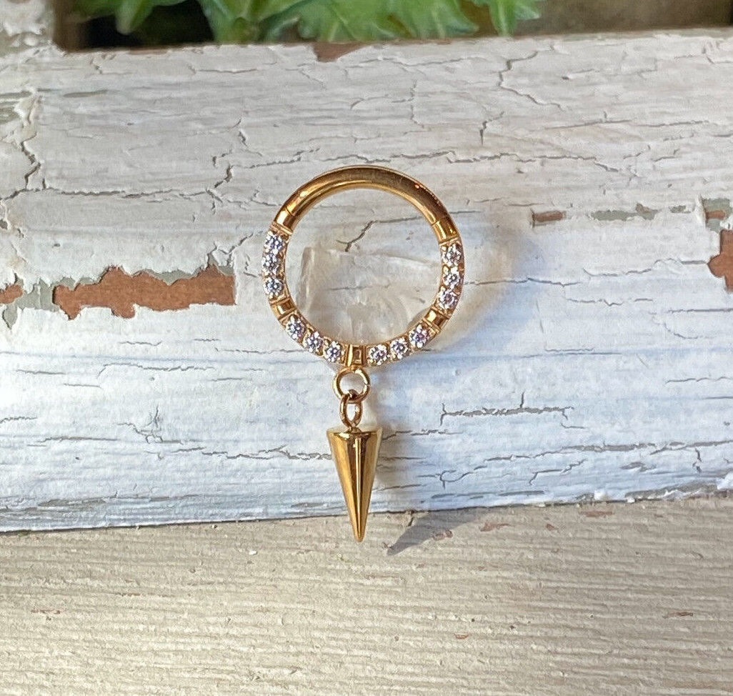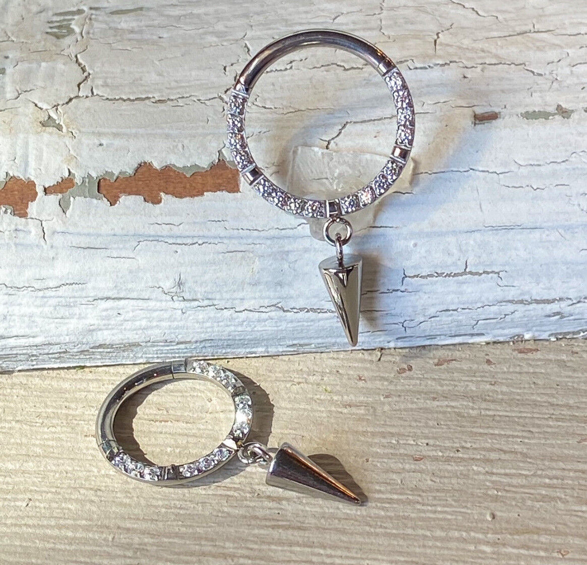 CNC Gem Front w/ Spike Dangle Design Hinged Segment or Cartilage Ring - select desired color/size from the drop down menu