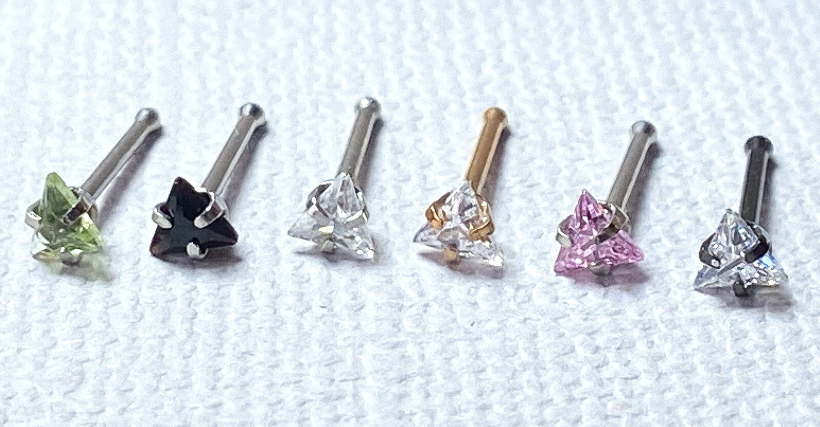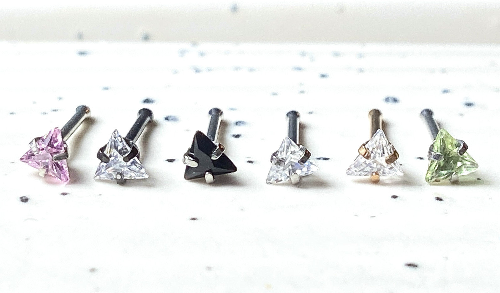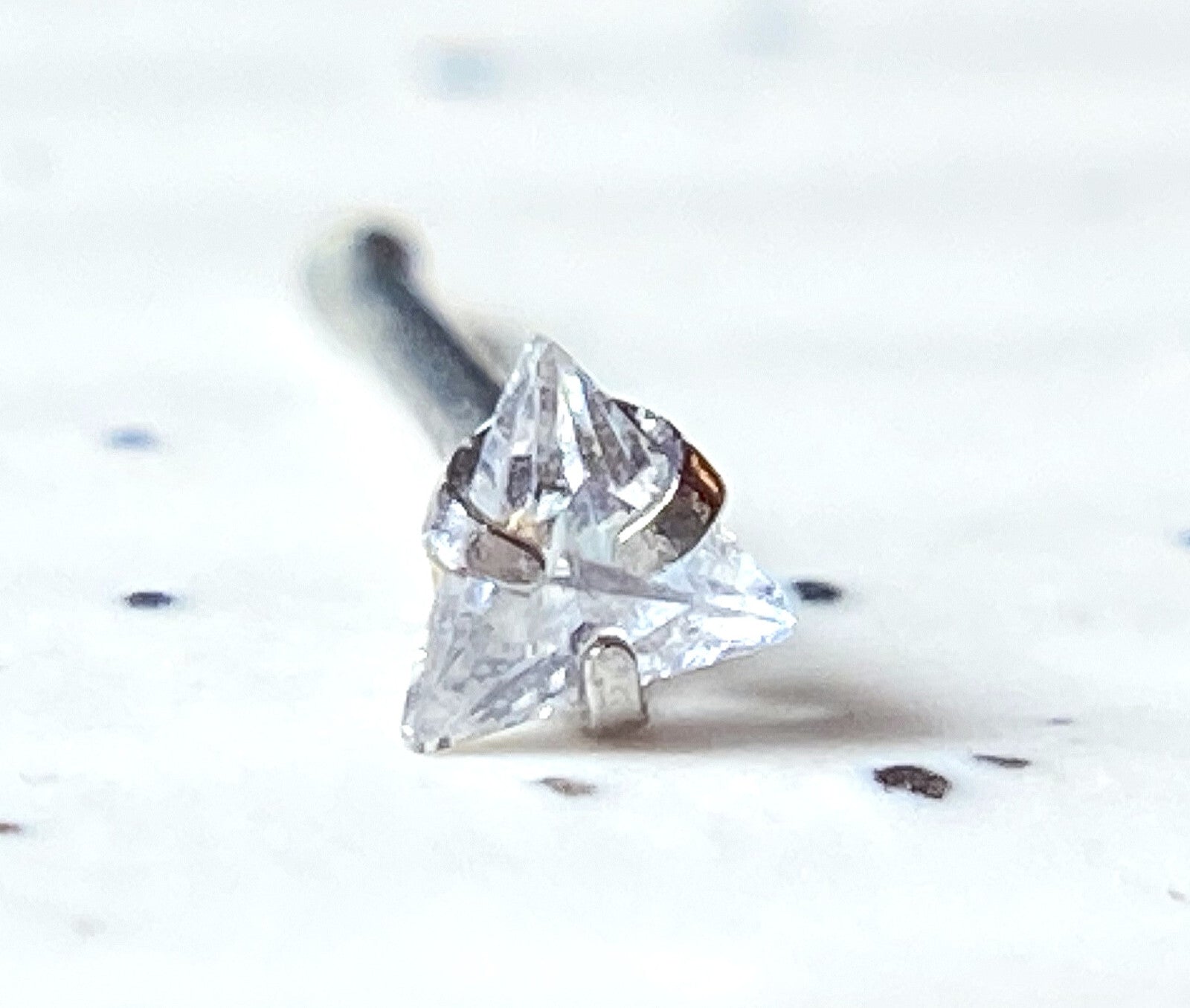 1pc Triangle CZ Gem Top 20g Nose Ring Stud Bone 316L Surgical Steel
