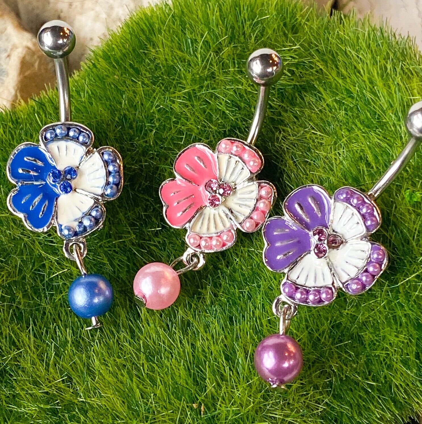 1pc Tropical Flower Pearl Dangle Belly Ring Navel Piercing Pierced Naval