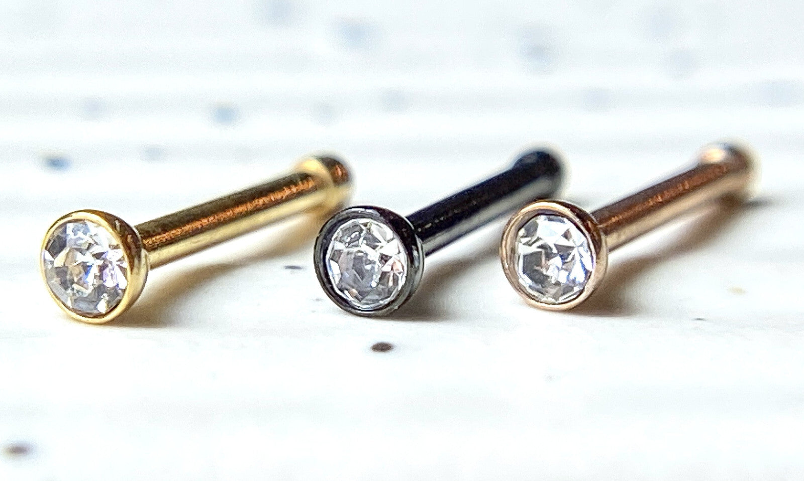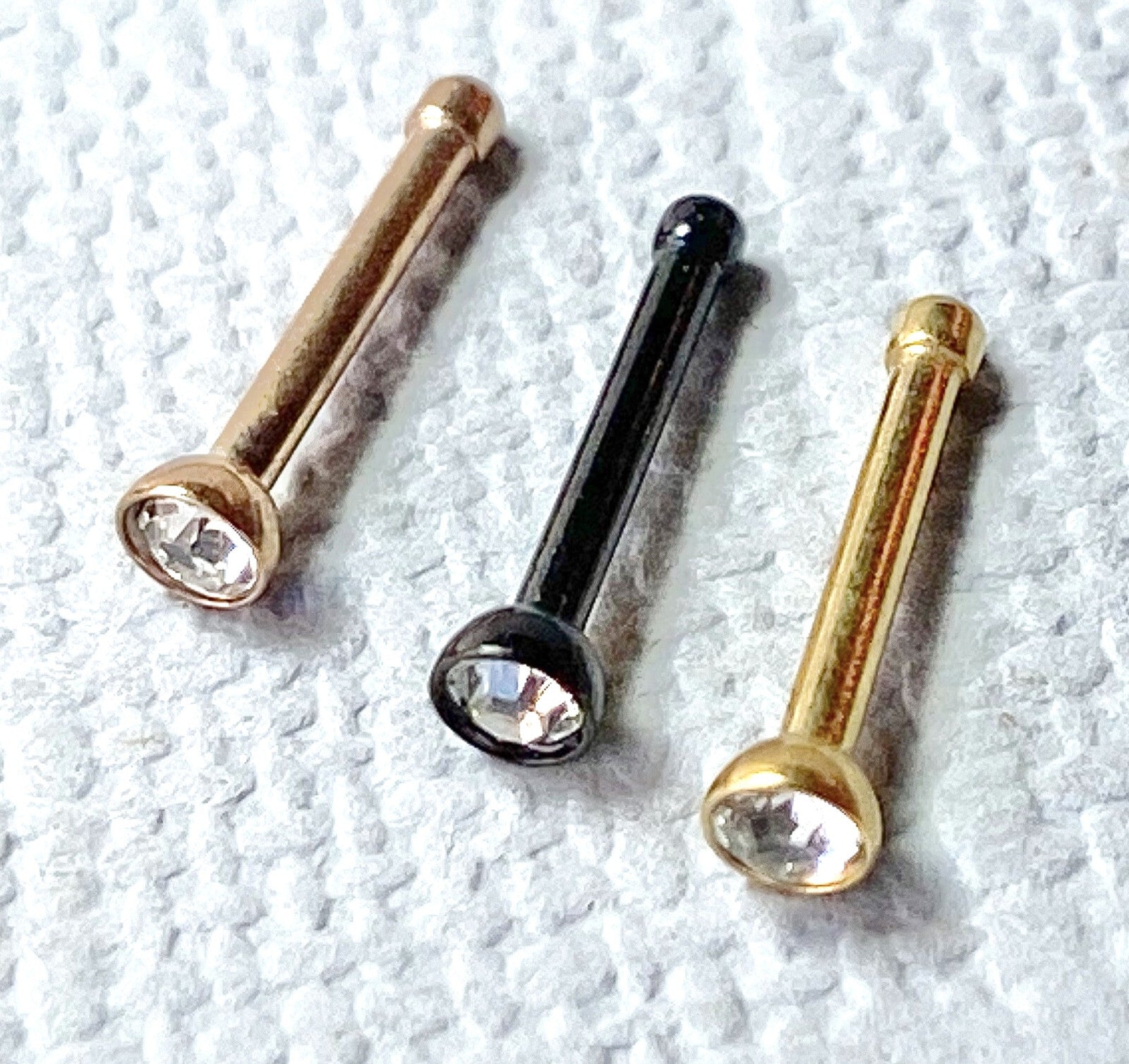 3pc Value Pack PVD Plated Nose Studs Black, Gold & Rose Gold - choose 18g or 20g