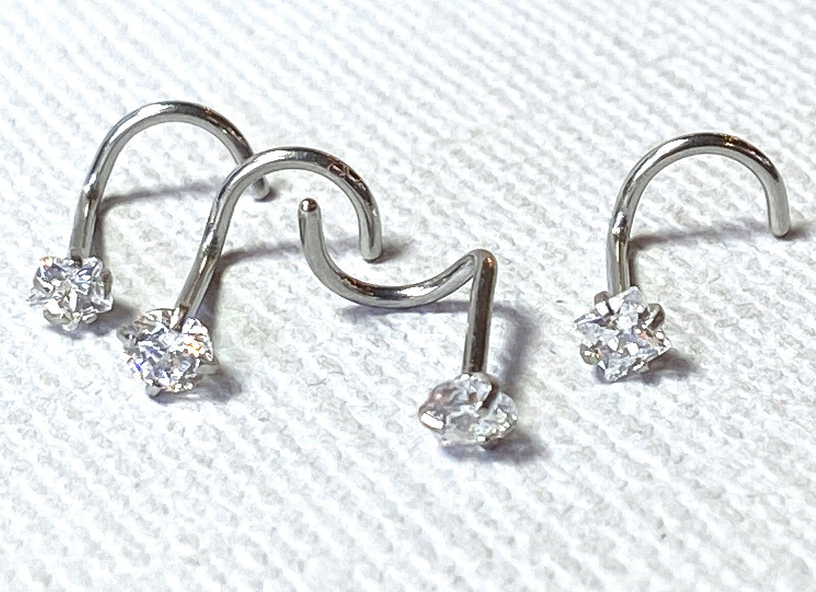 4pc Value Pack Prong Set Shaped Gem Steel Nose Screw Rings - choose 18g or 20g