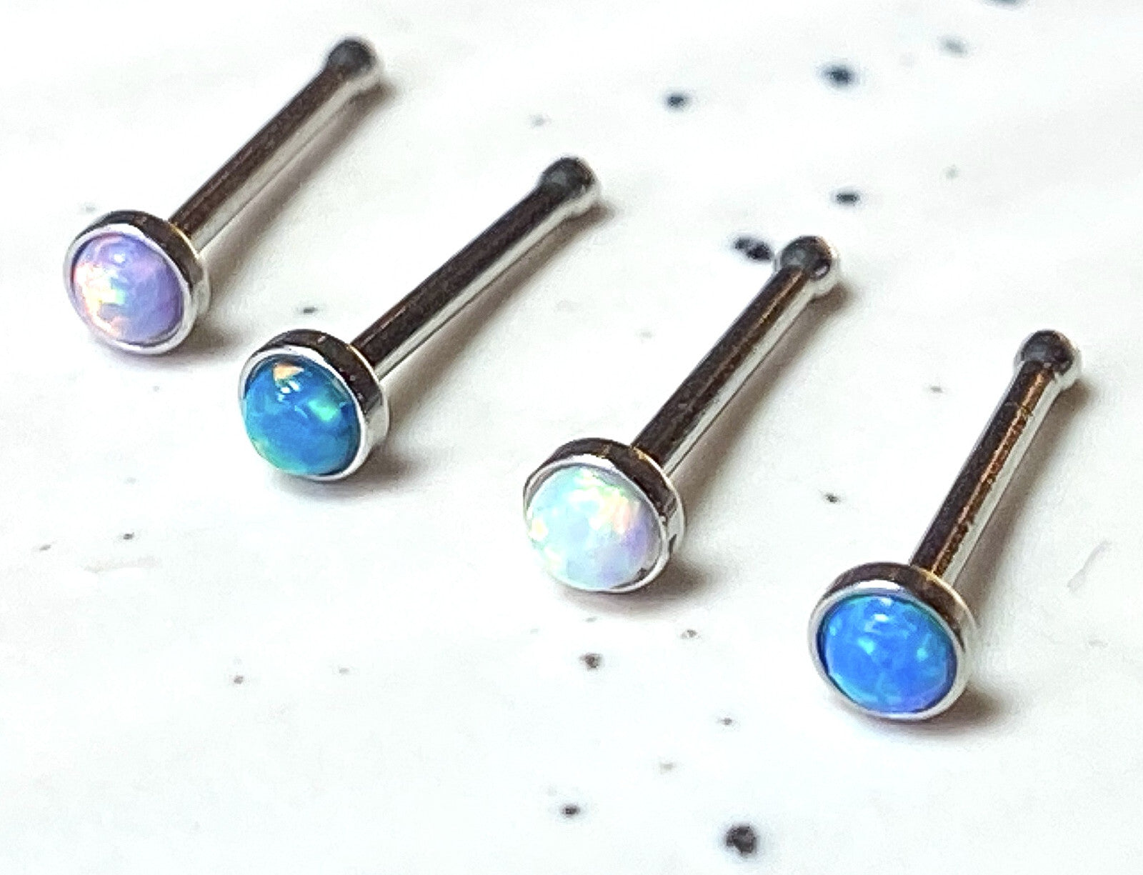 4pcs Value Pack Synthetic Opal Set 20g Steel Nose Rings - choose Studs or L-Bend
