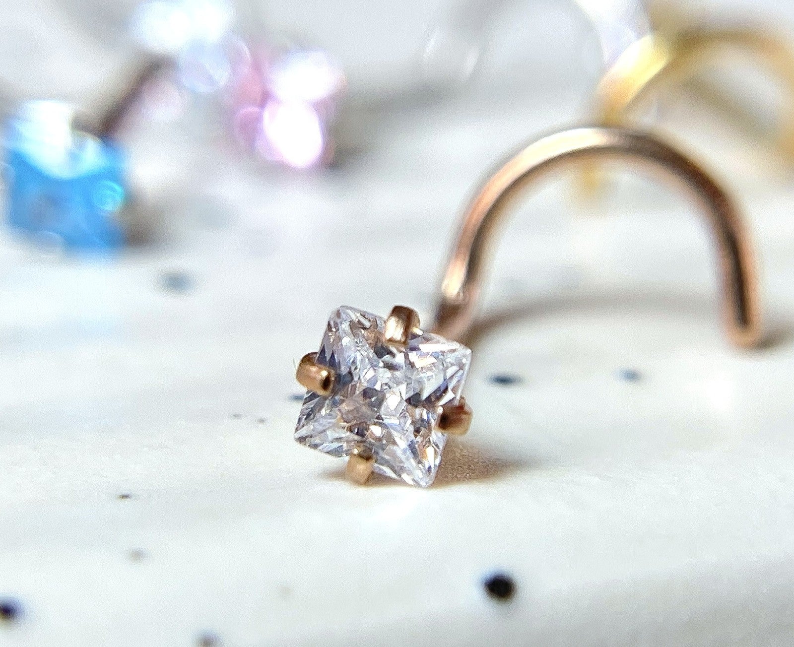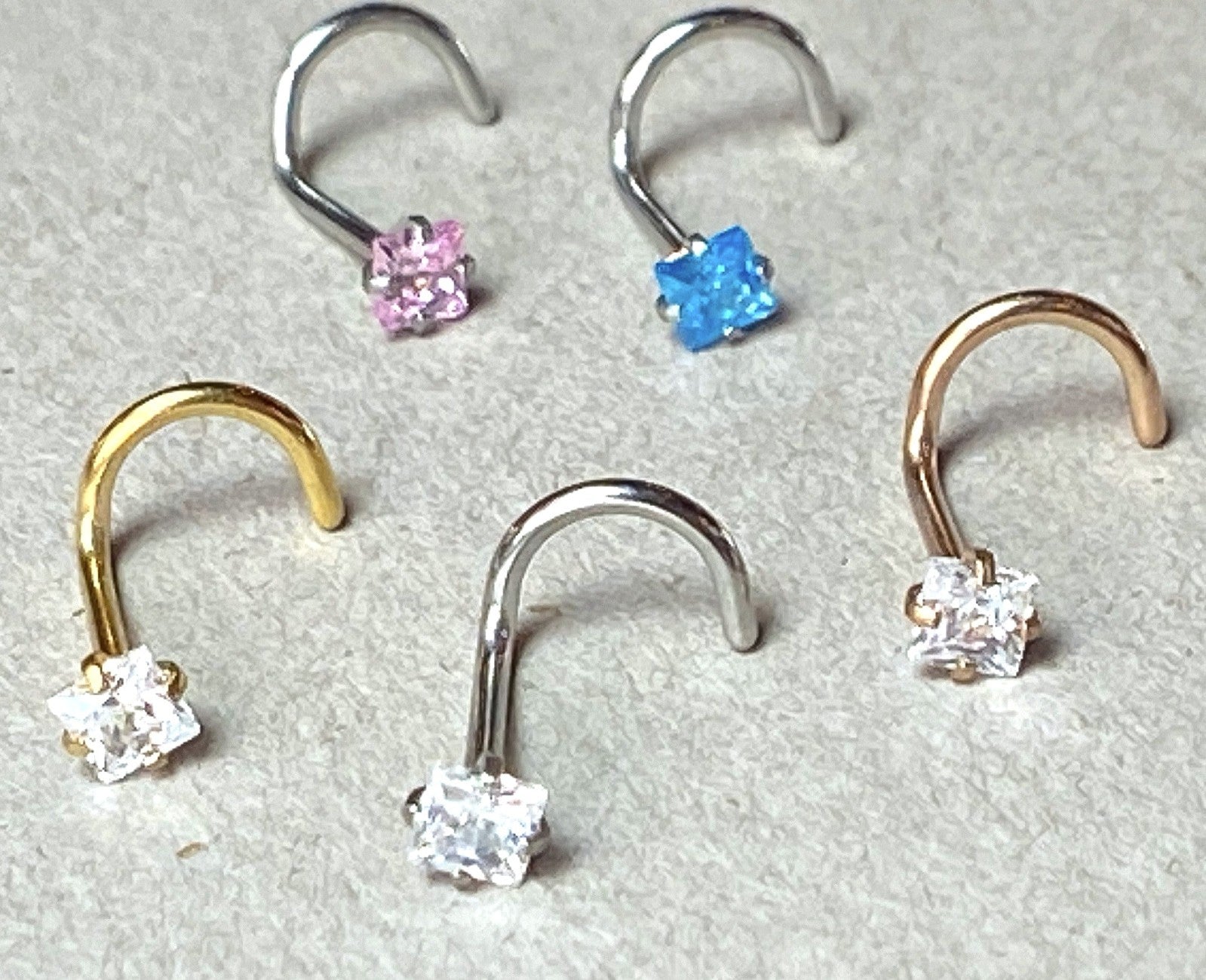 5pcs Prong Set Square Gem Nose Ring Screws 316L Surgical Steel Body Jewelry