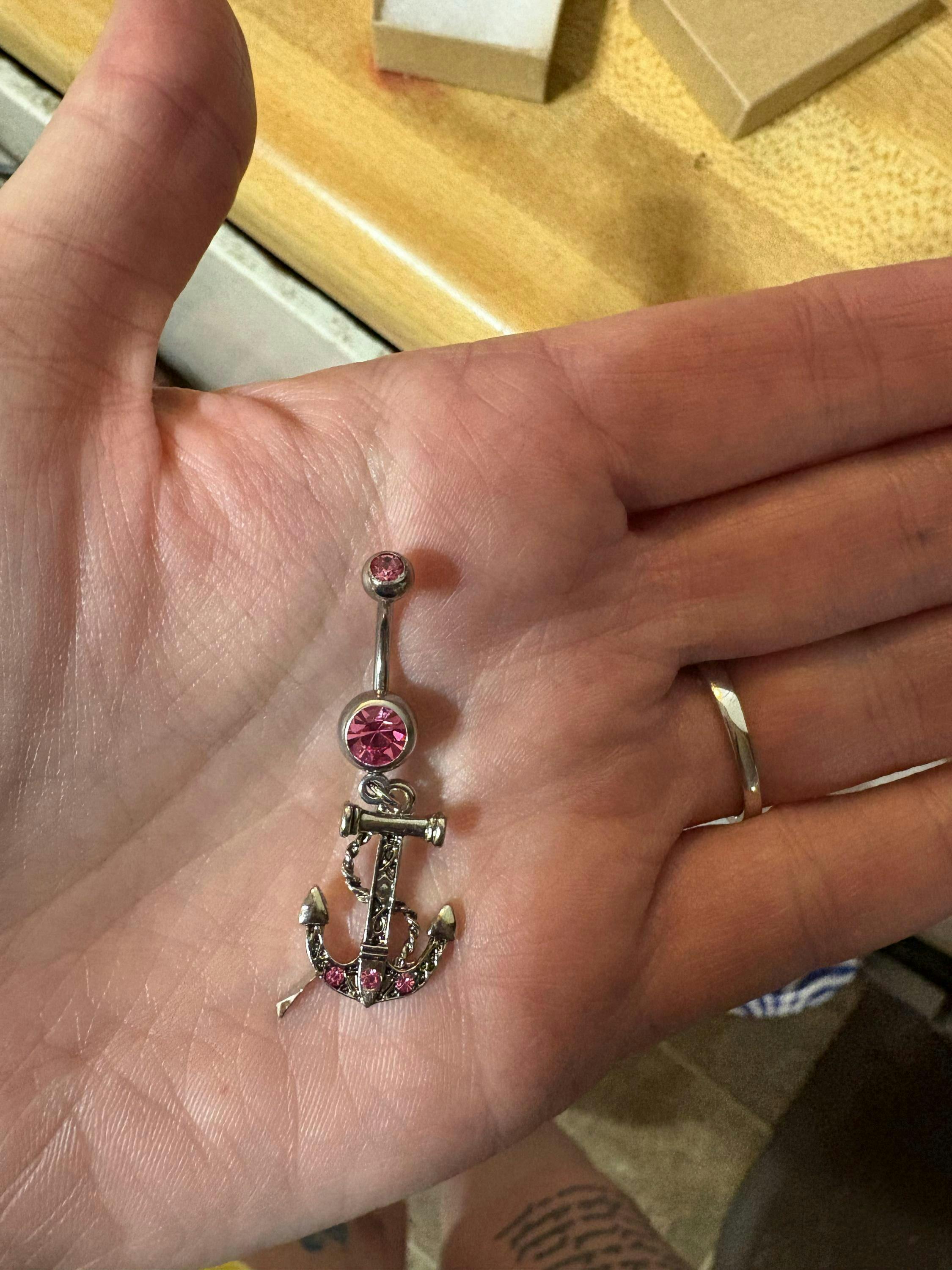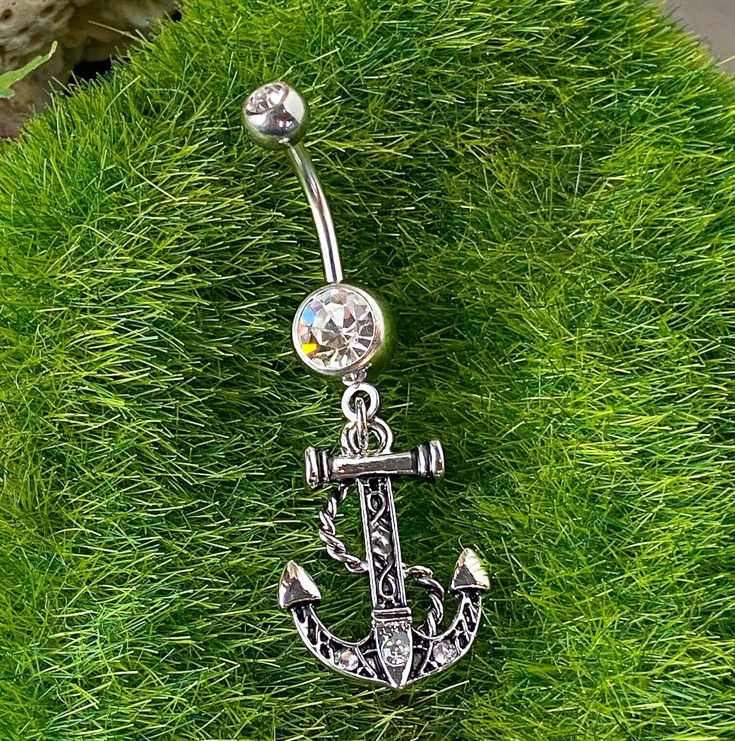 Anchor Dangle Belly Ring Pierced Navel Ship Nautical CZ Gem Clear, Pink, Aqua
