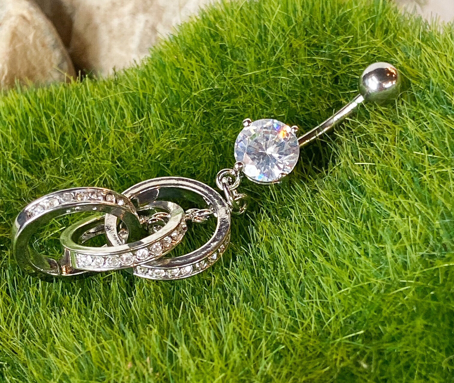 Triple Circle Dangle Paved with Clear Gems Belly Ring