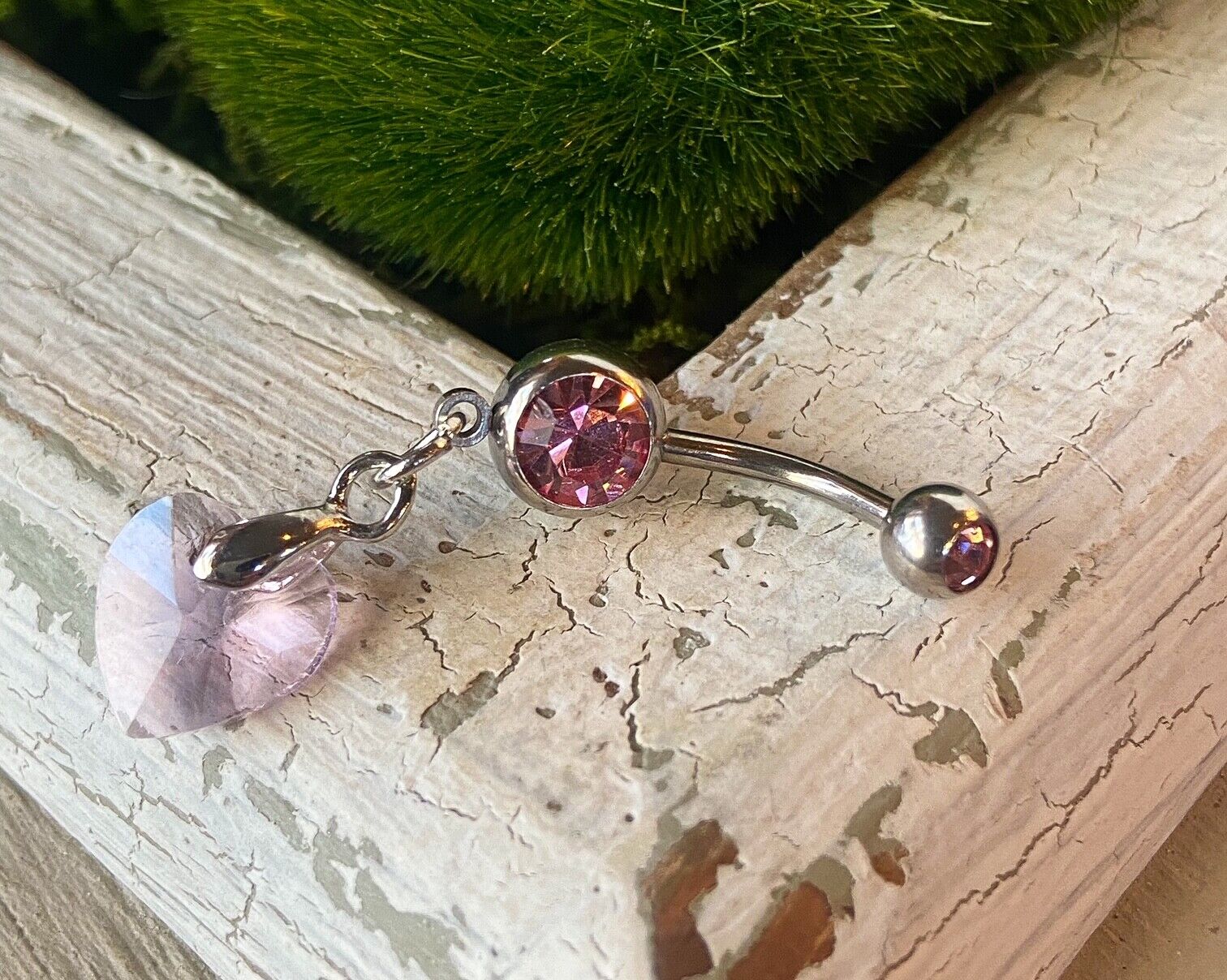 Crystal Ray Prism Heart Gem Belly Ring Navel Naval AB, Clear, Pink, Aqua