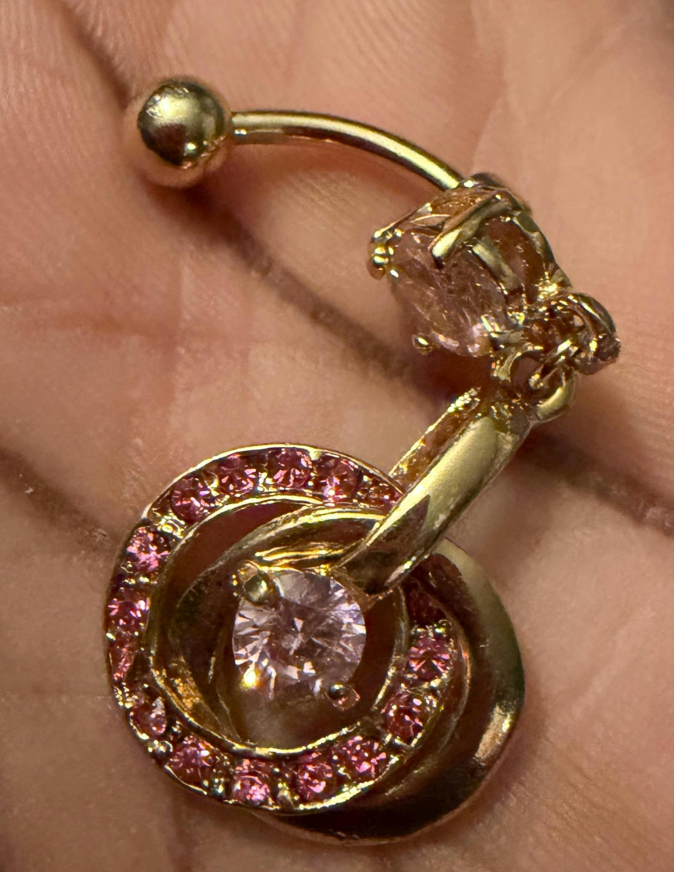 Gold Plated Entwined Circles Paved W/ CZ Gem Dangle Belly Ring - Select color from drop down menu above