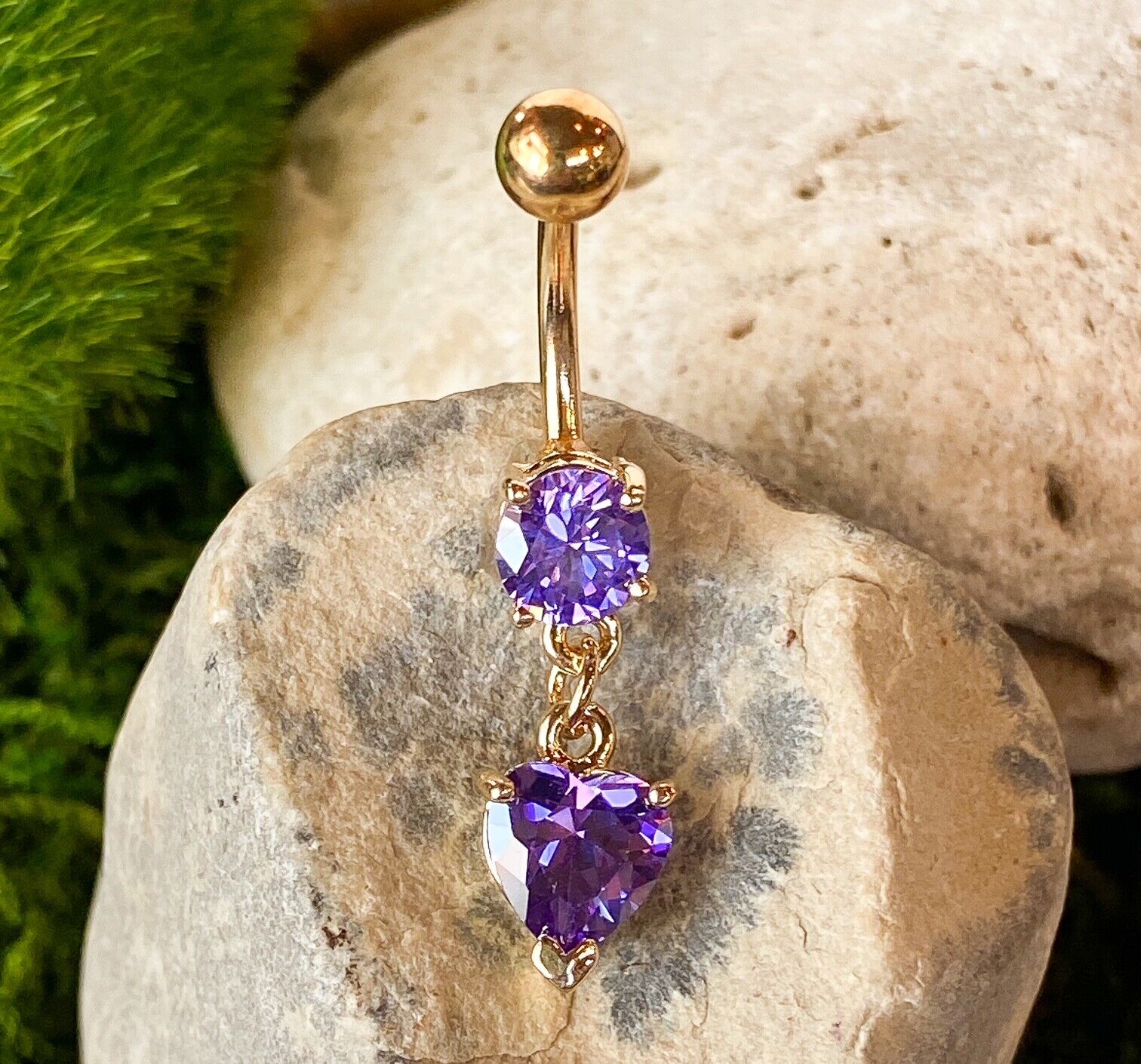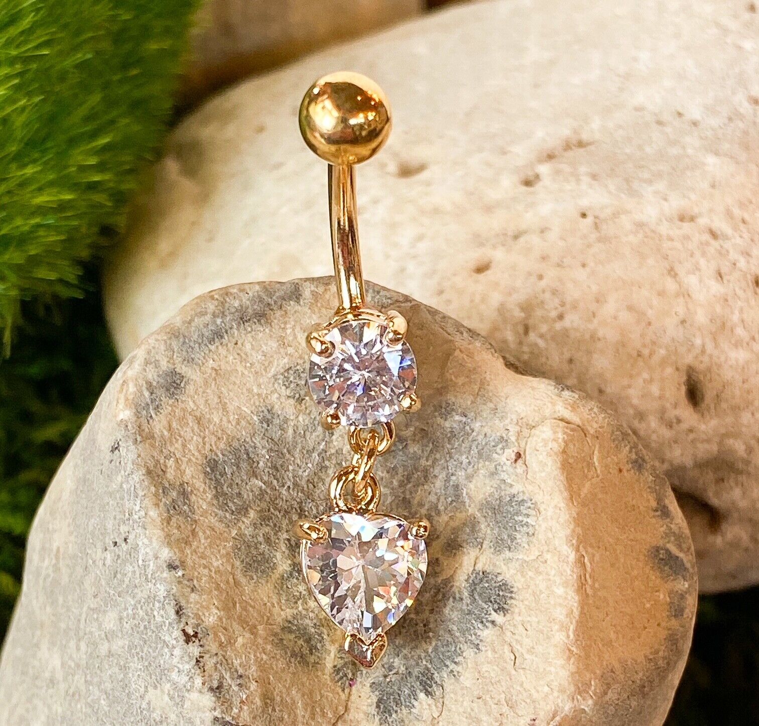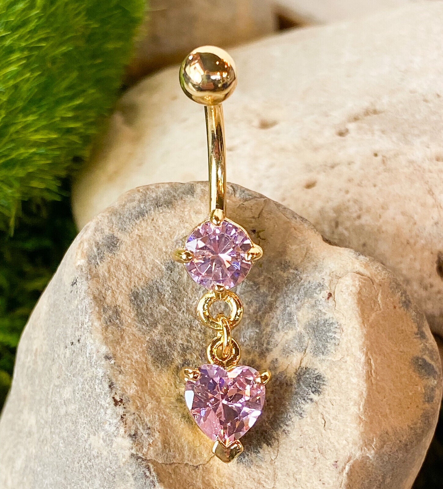 Gold Heart CZ Gem Belly Ring Navel Naval Clear, Pink, Tanzanite