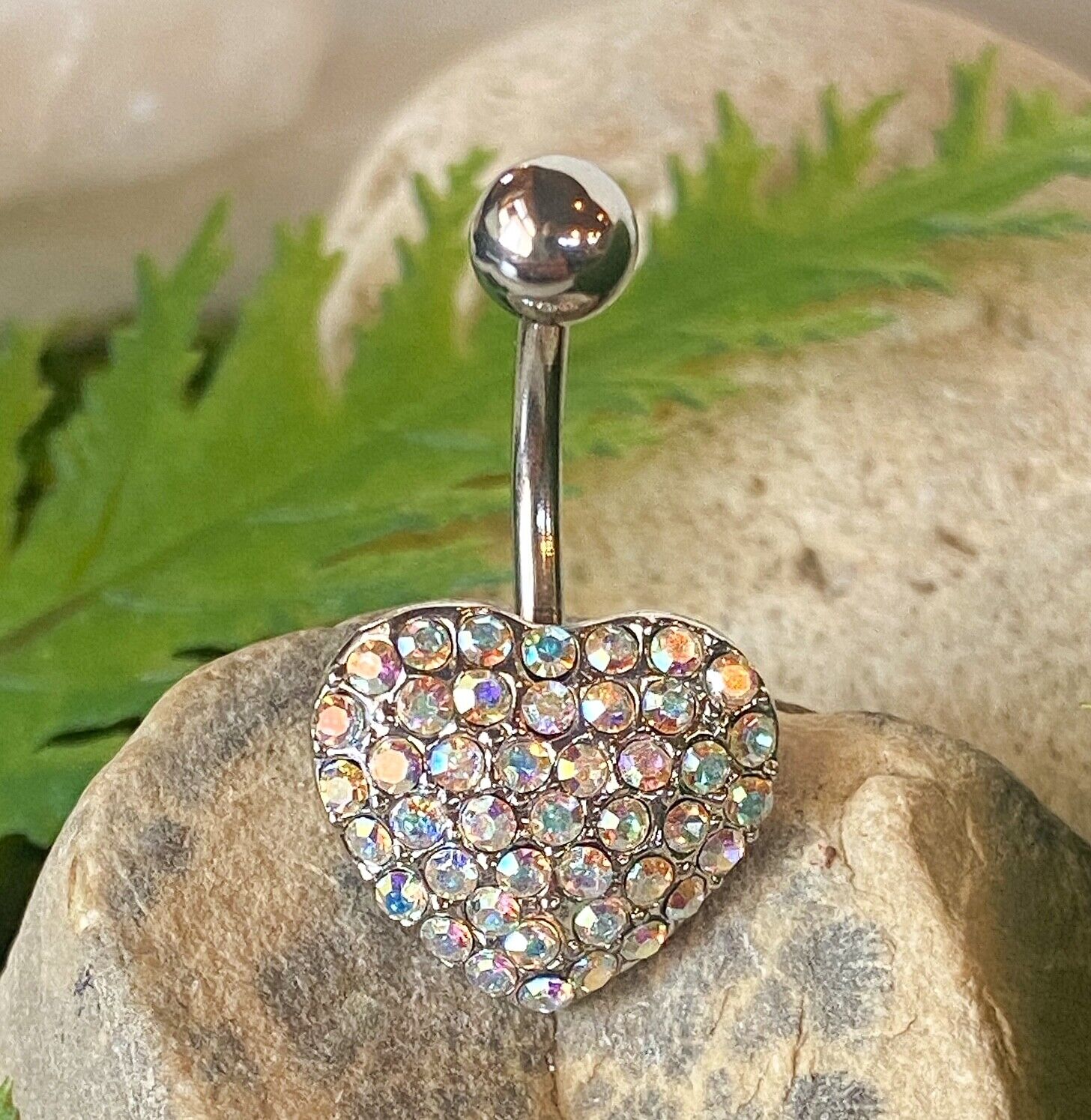 Heart Paved with Crystal Gems Belly Ring - Select color from drop down menu above