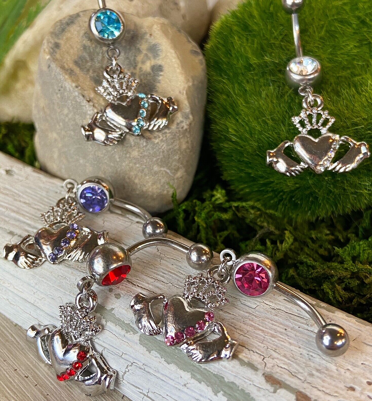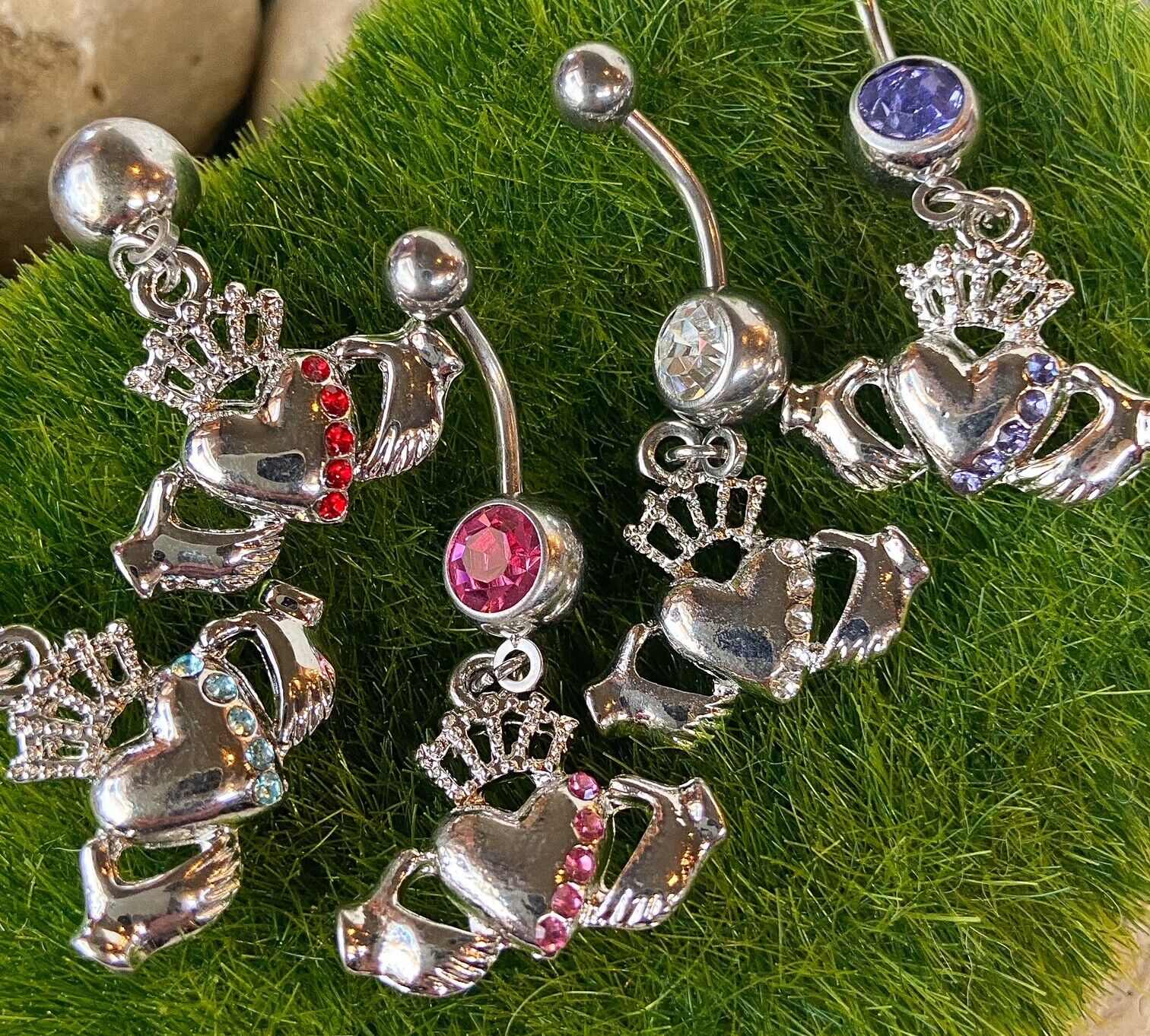 Irish Claddagh CZ Gem Belly Ring - Select color from drop down menu above