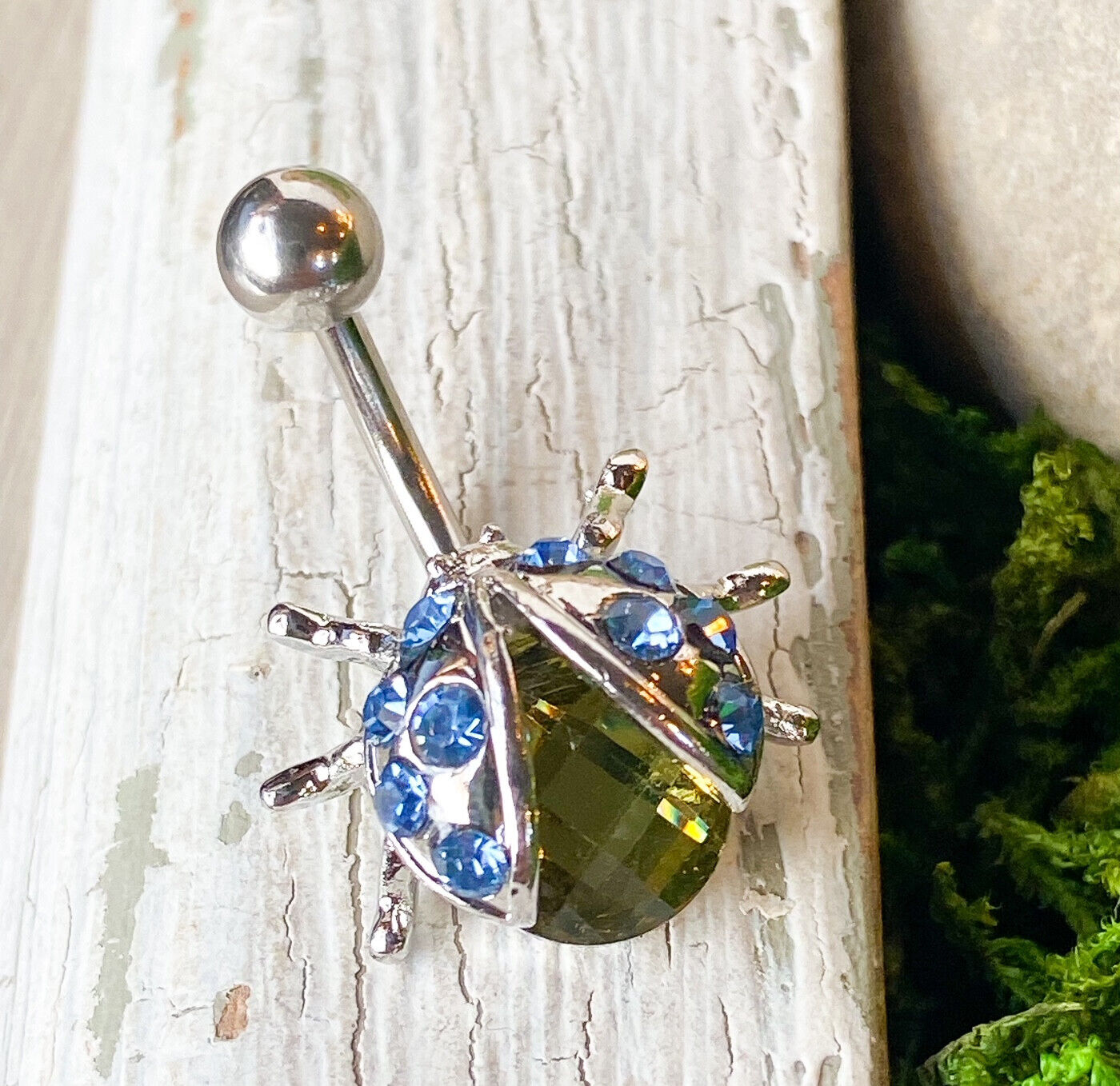 Ladybug Light Blue Gem Belly Ring Navel Piercing Pierced Naval Lady Bug Insect