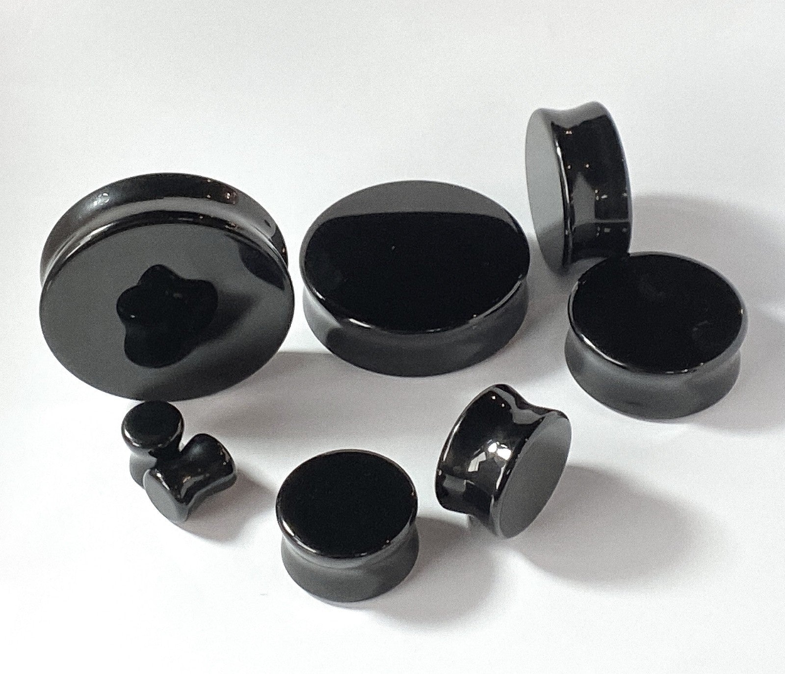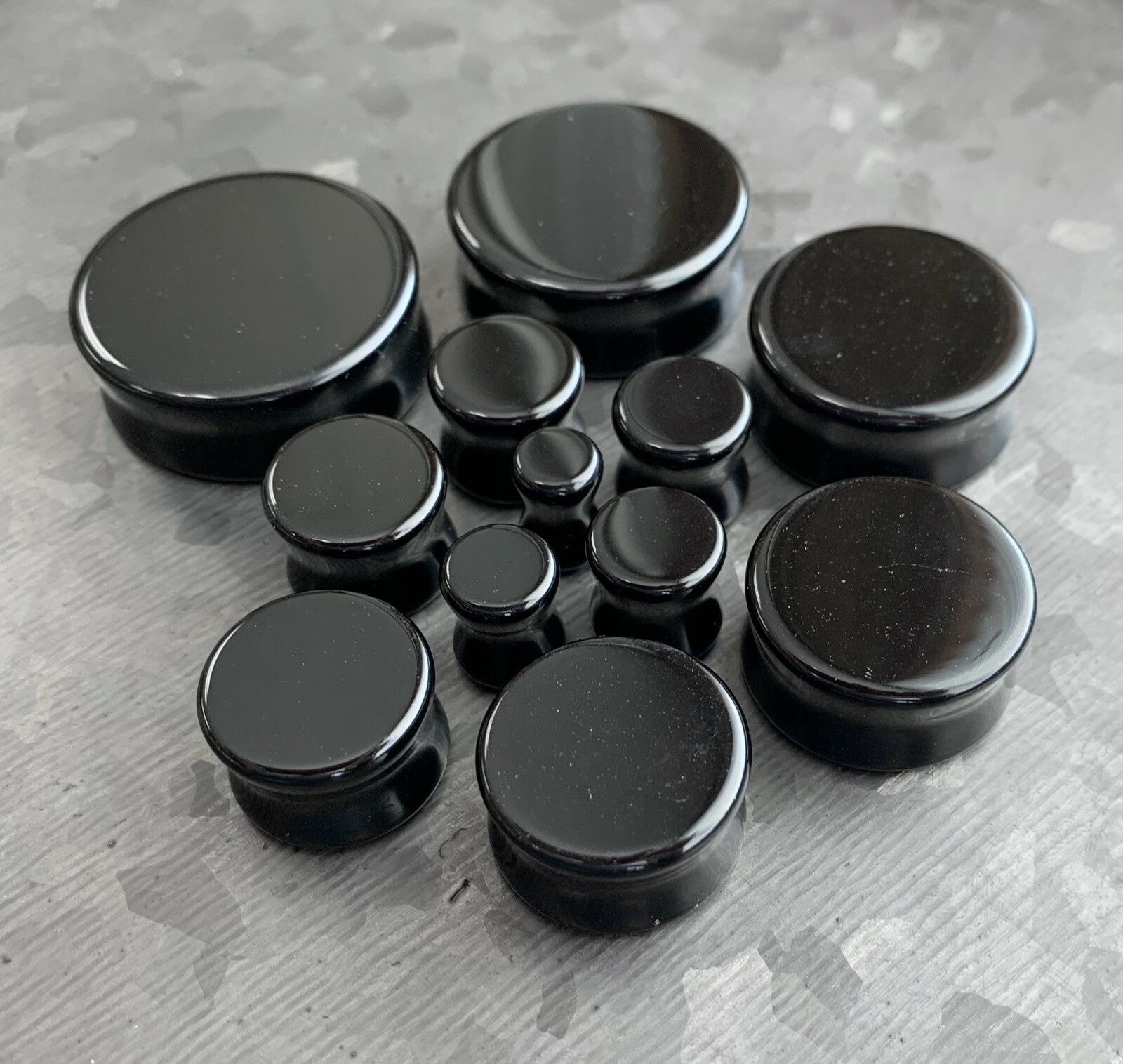 PAIR Black Flat Glass Double Flare Plugs Gauges Earlets Body Jewelry