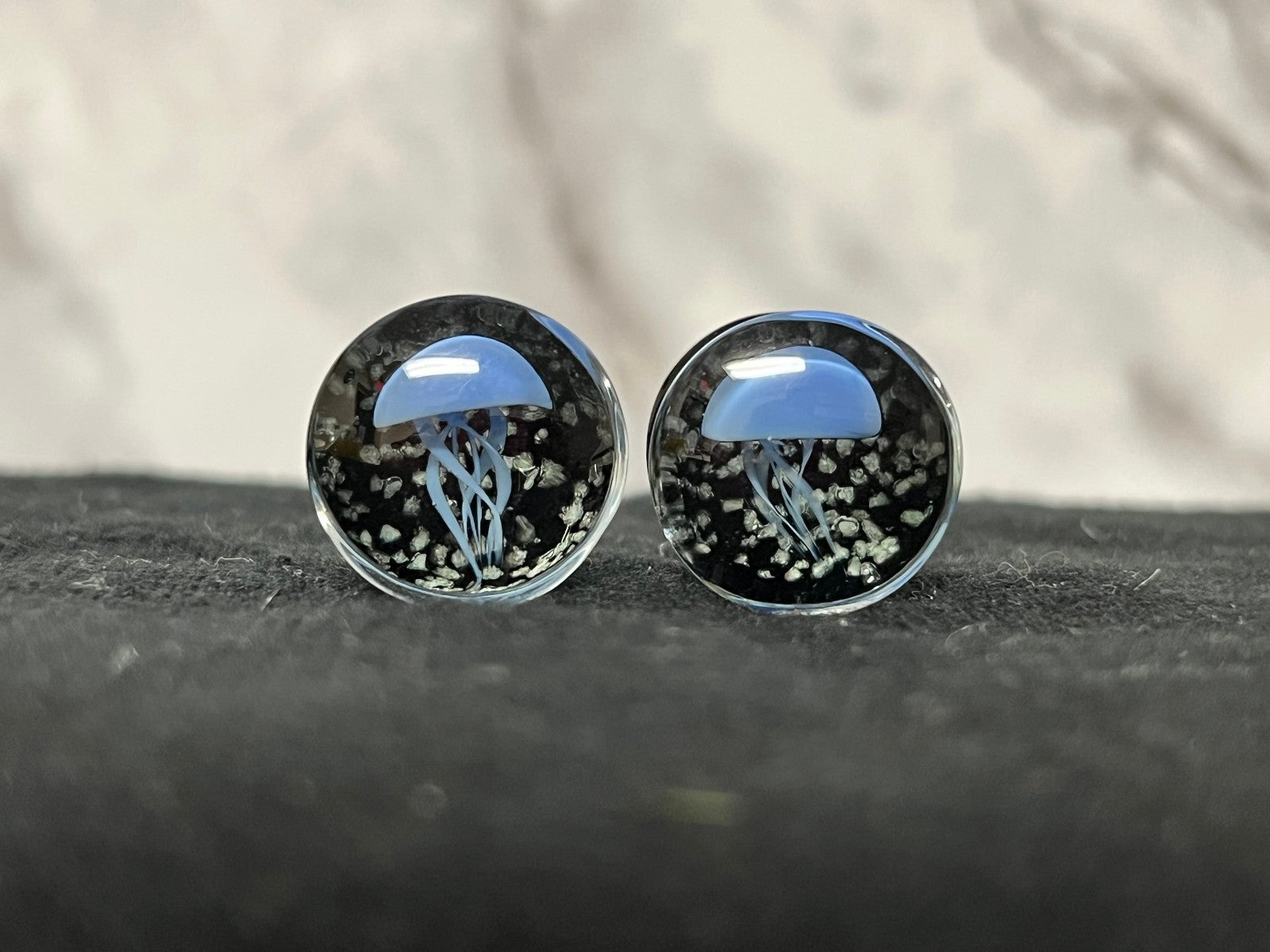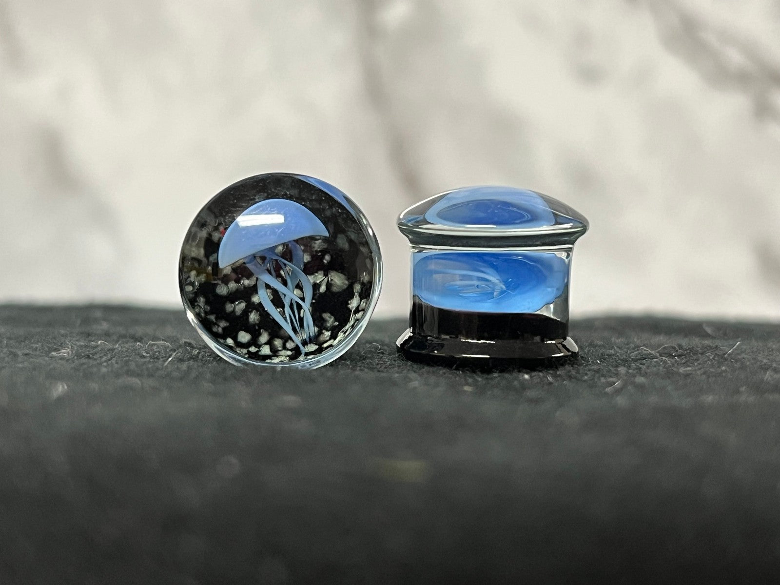 Glass Jellyfish Double Flare Plugs by-the-pair (ordering a quantity of one gets you a pair)