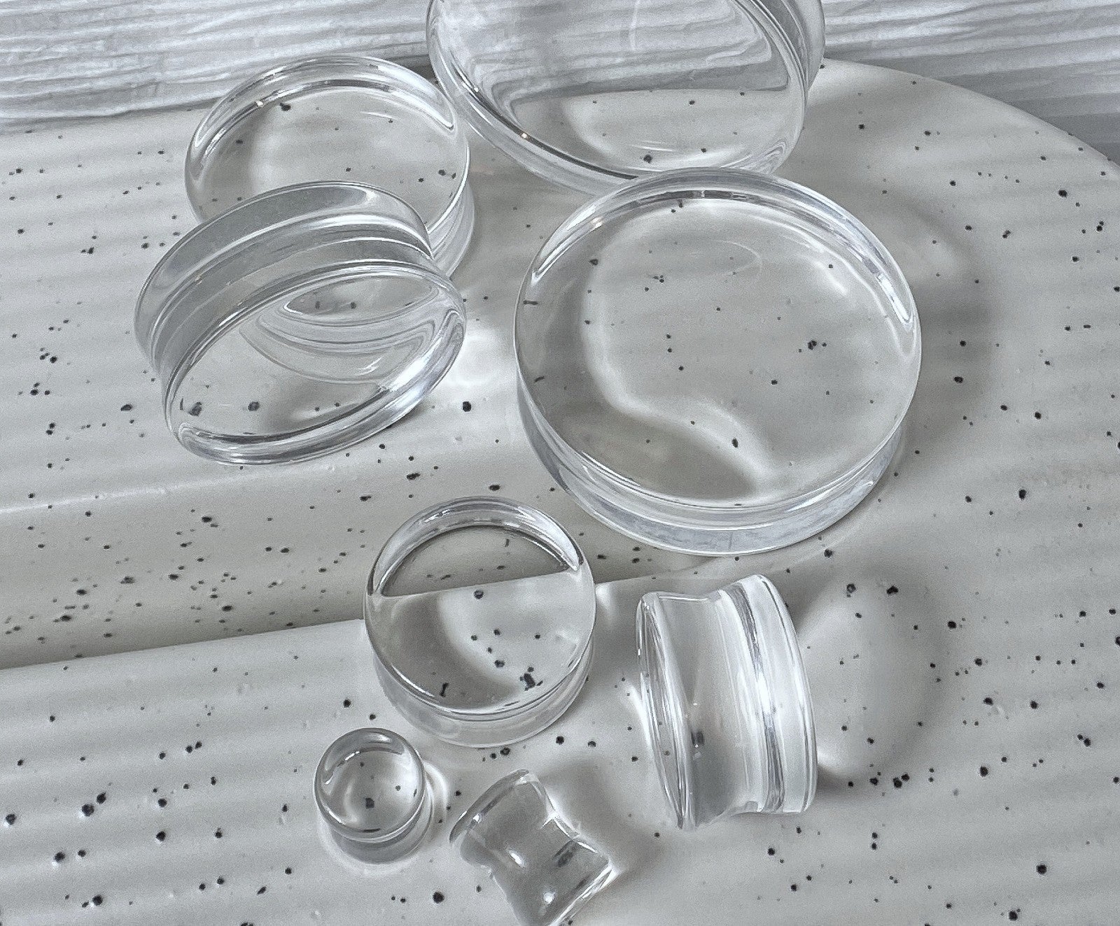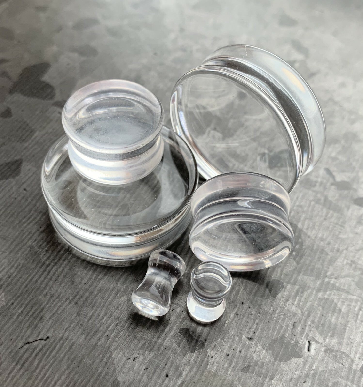PAIR Clear Flat Glass Double Flare Plugs Gauges Earlets Body Jewelry