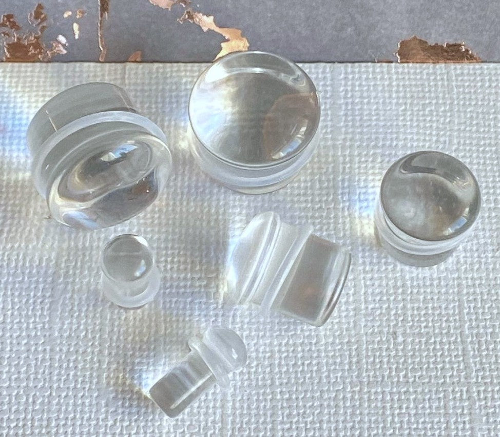 PAIR Clear Glass Single Flare Plugs Gauges Tunnels Earlets Body Piercing Jewelry