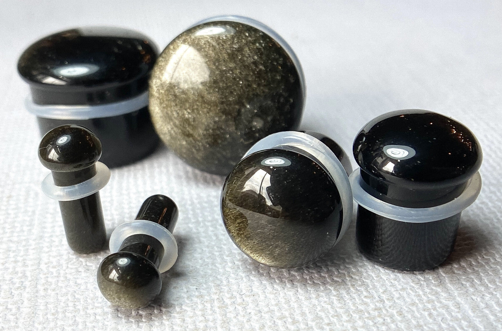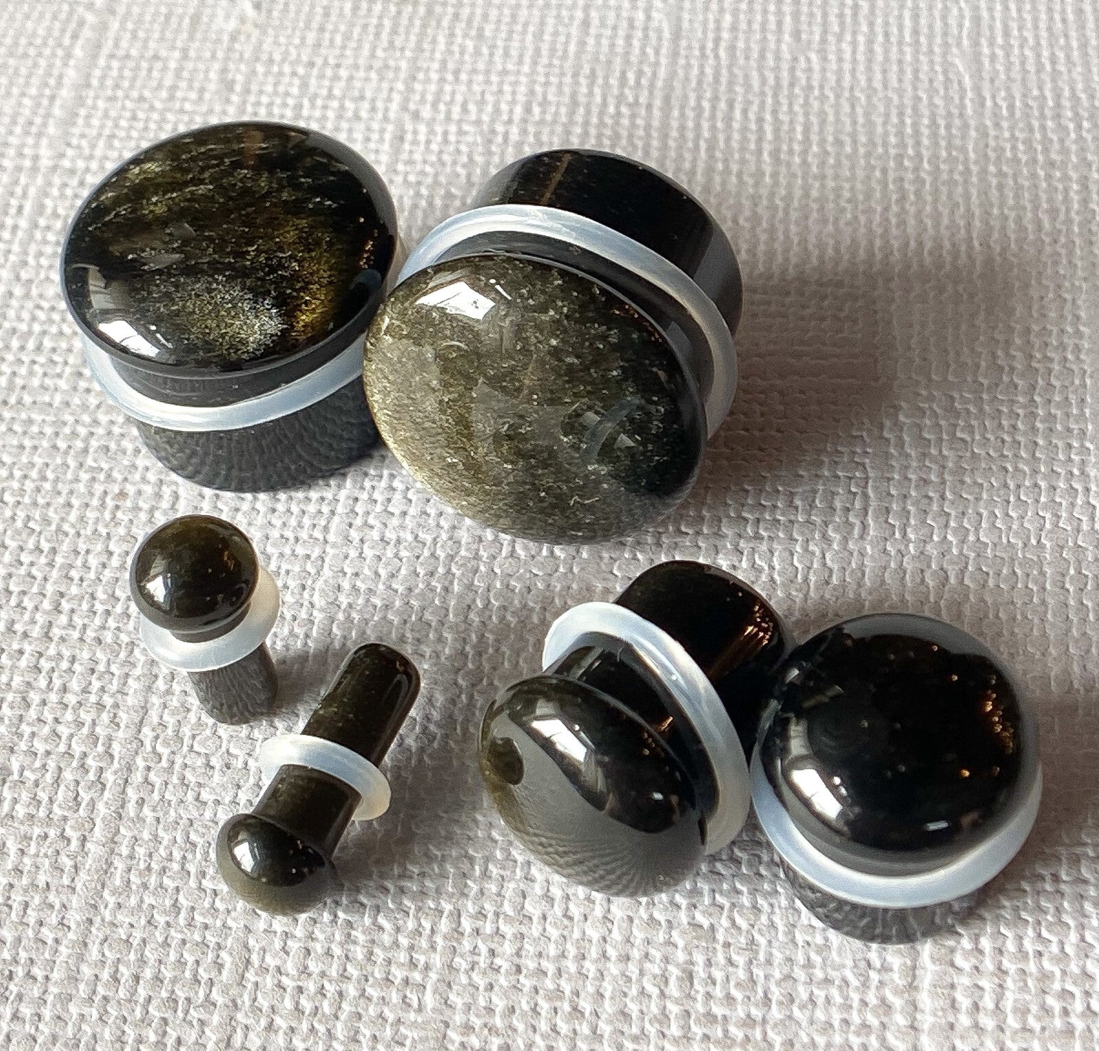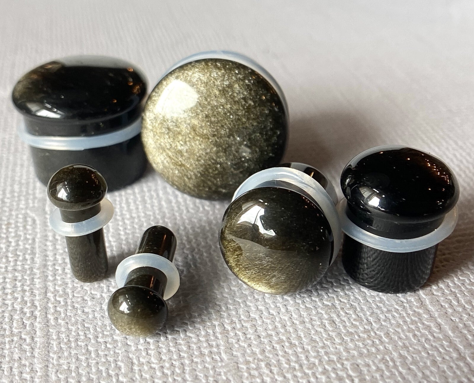 PAIR Golden Obsidian Stone Single Flare Plugs Organic Gauges Body Jewelry