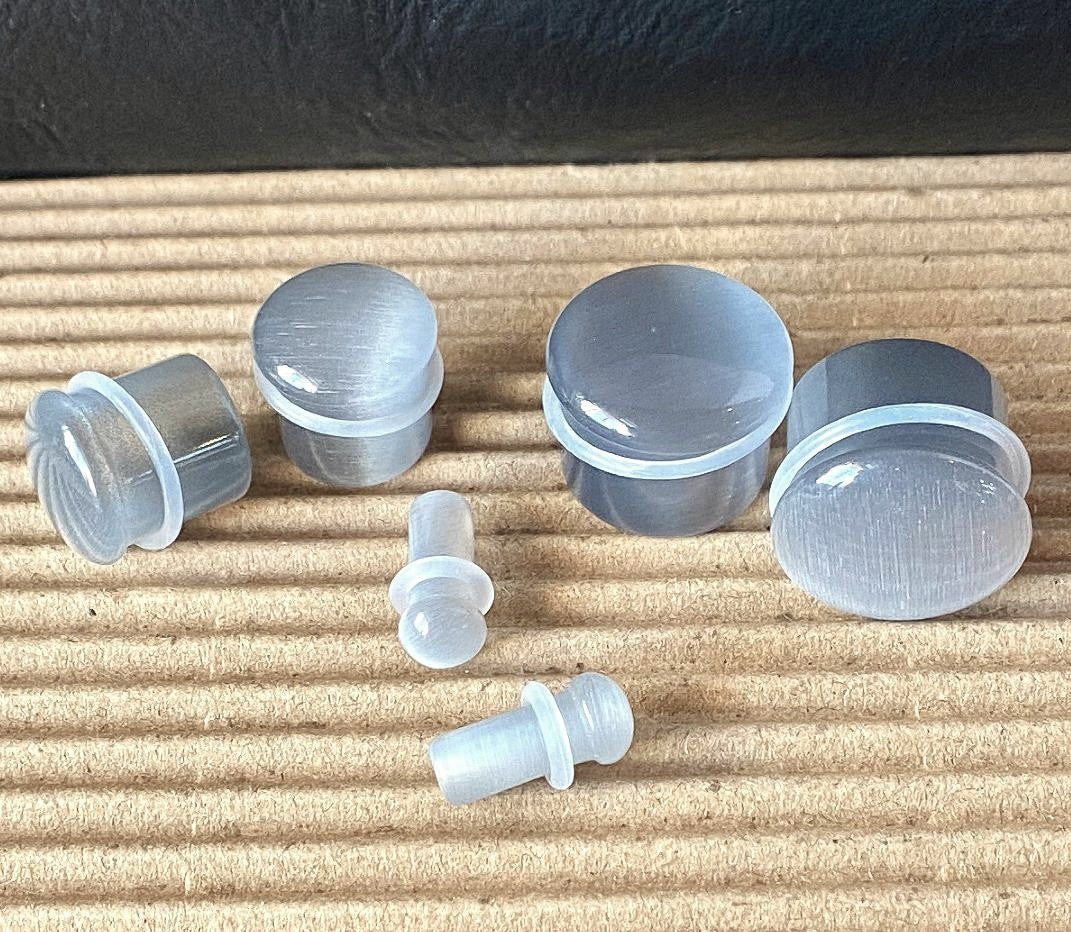 PAIR Gray Cat Eye Stone Plugs Single Flare Tunnels Earlets Gauges Body Jewelry