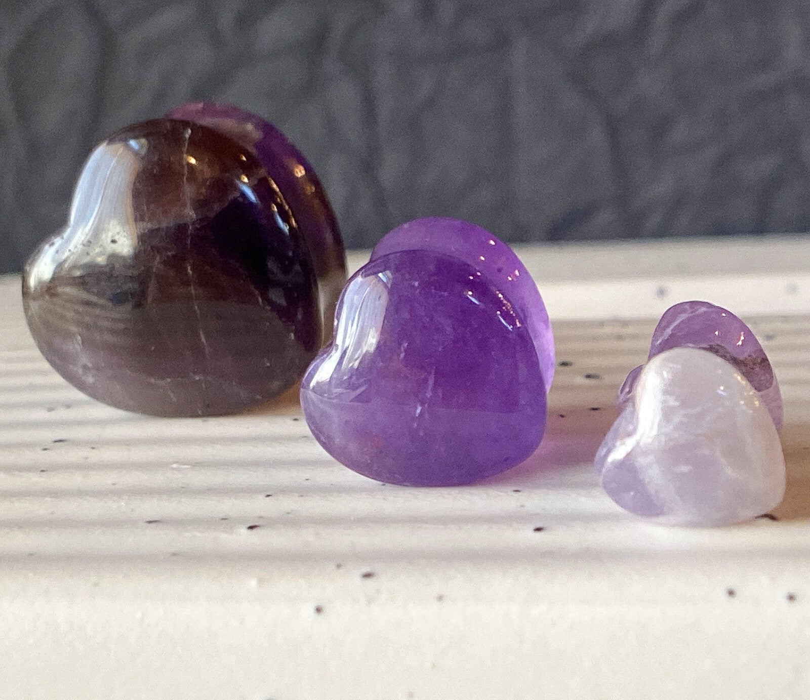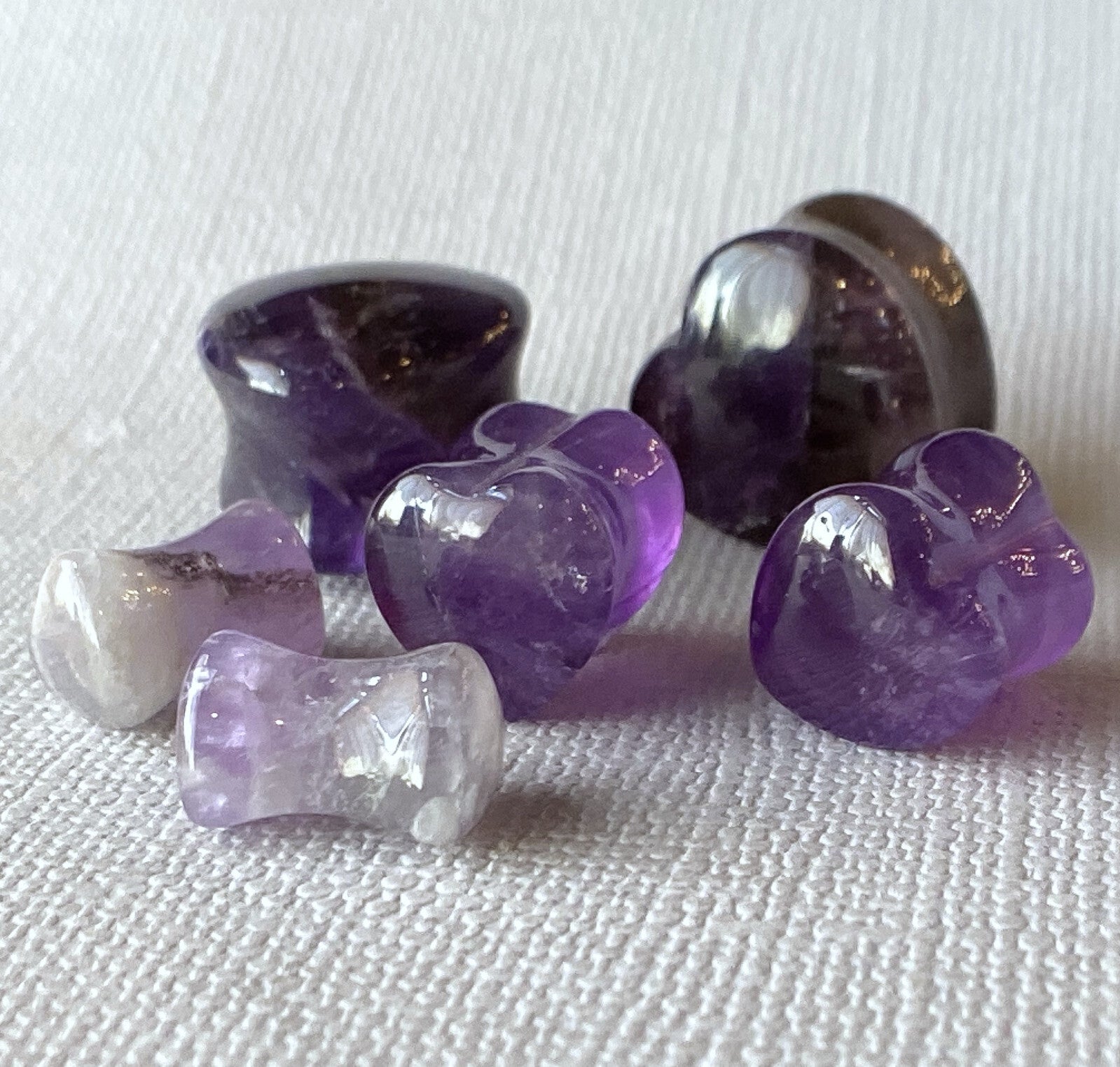 PAIR Heart Shaped Amethyst Stone Plugs Gauges Amythest Tunnels Body Jewelry
