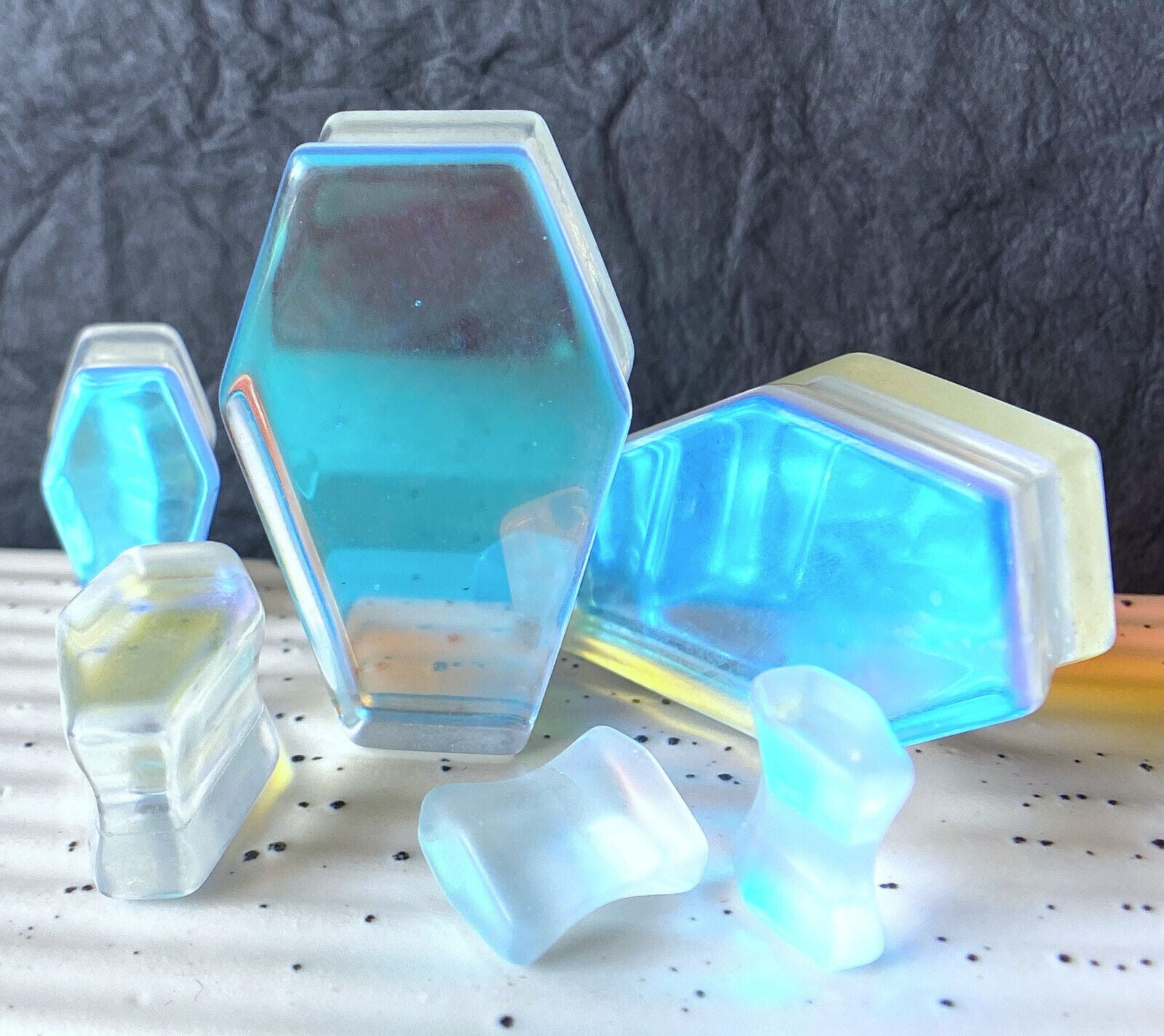 PAIR Luminous Moonstone Iridescent Glass Coffin Shaped Plugs Gauges Tunnels