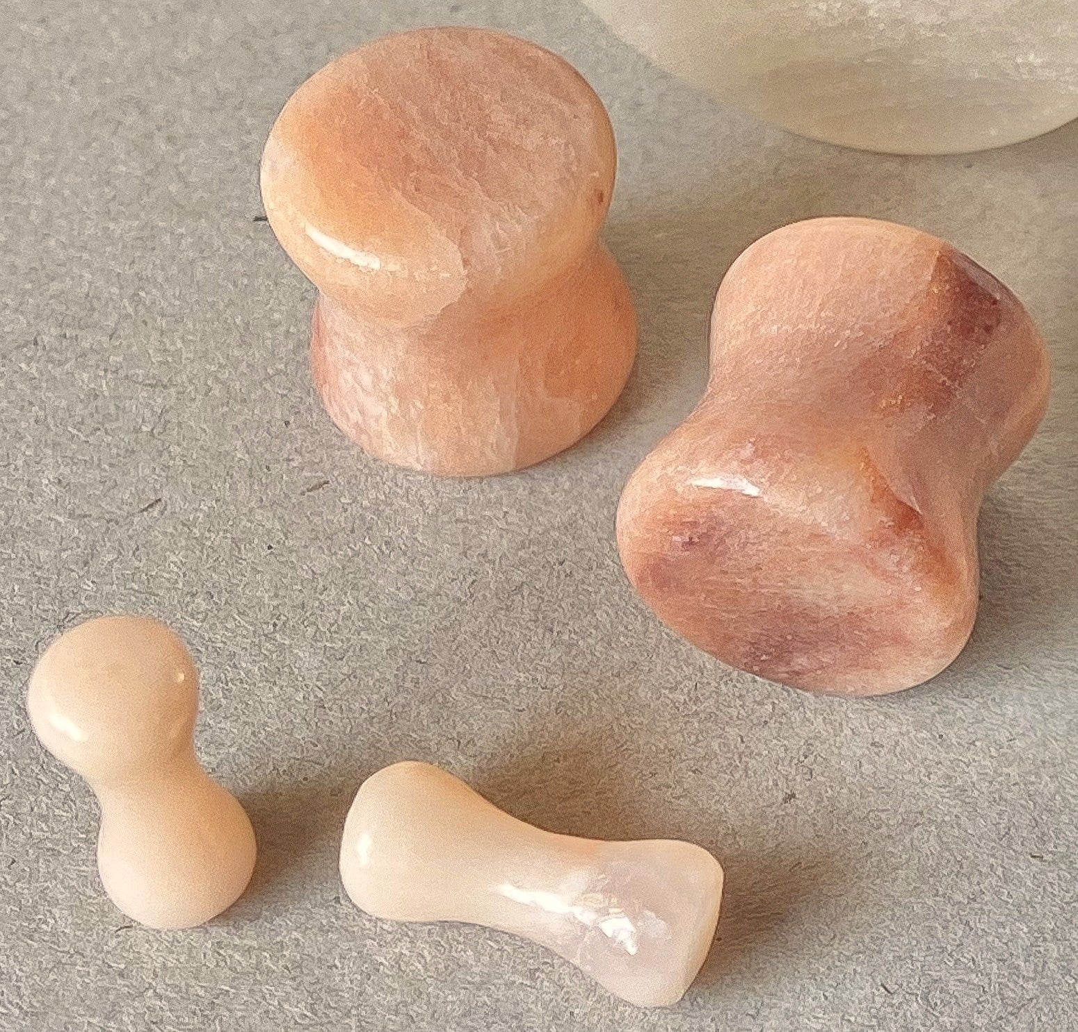 PAIR Natural Peach Semi-Precious Stone Double Flare Plugs Organic Earlets Gauges