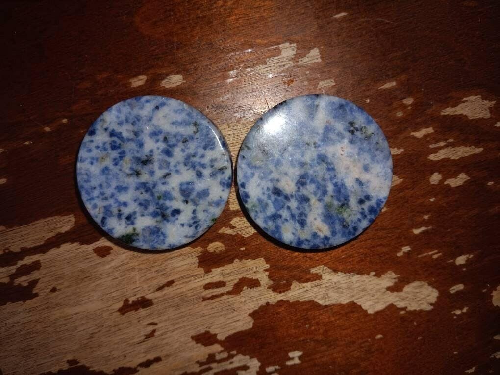 PAIR of Beautiful Blue Spot Jasper Organic Stone Double Flare Plugs Tunnels Gauges Body Jewelry
