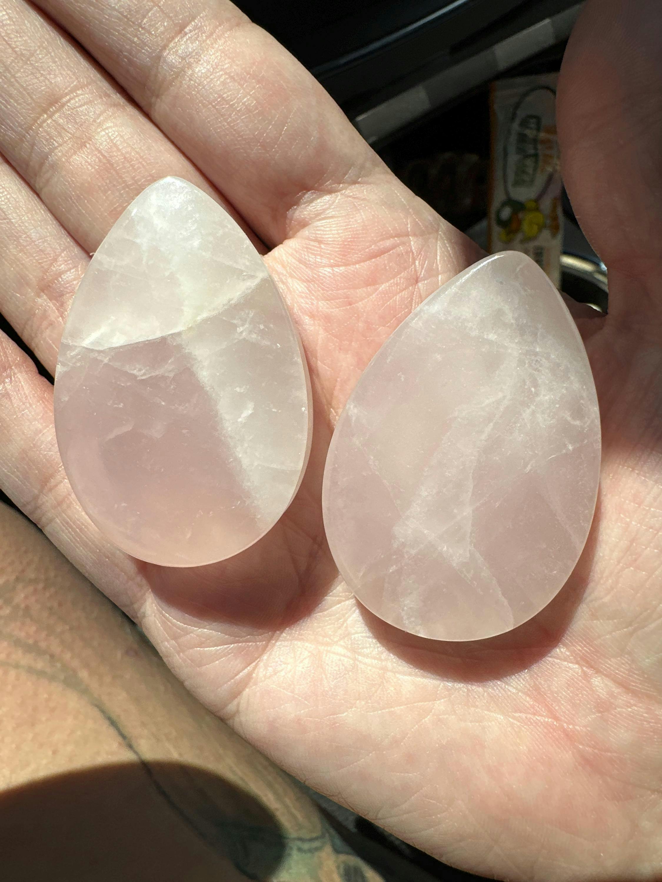 PAIR of Beautiful Teardrop Rose Quartz Organic Stone Plugs - Gauges 0g to 38mm!