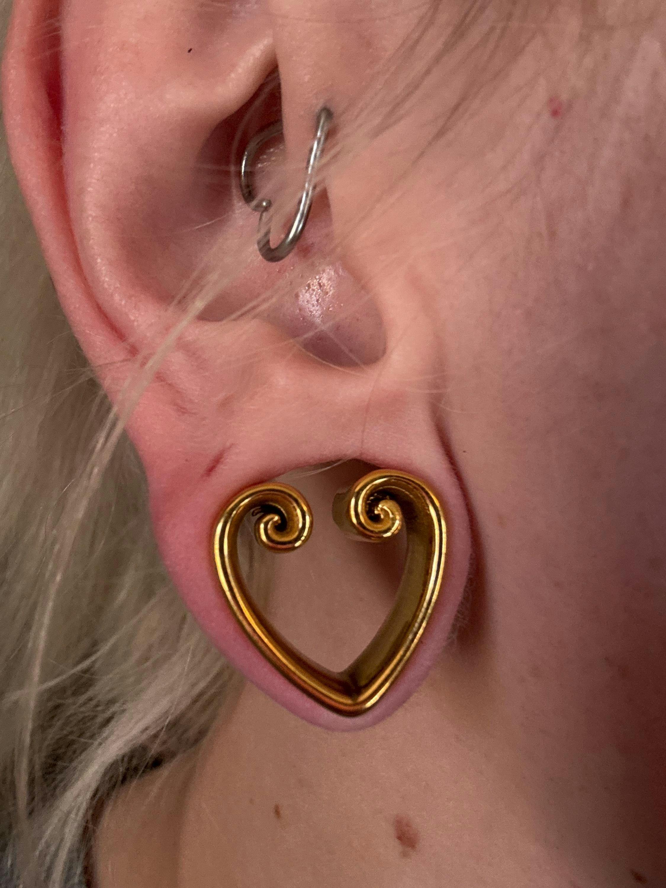 PAIR of Vintage Heart Steel Double Flare Saddle Tunnels/Plugs - Available in Silver, Gold & Black!